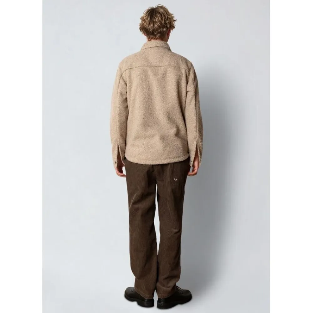 Ace kan bæres som en skjorte eller som en overskjorte, for eksempel over vores strikkede jumper Mountain. Den har en almindelig pasform og er fremstillet af boucle-stof, der er fremstillet af en række fibre med løkker. Med trykknaplukning og forlomme. Modellen bærer størrelse L, 187 cm høj.