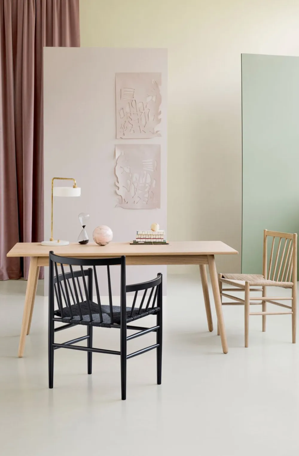J80 Spisebordsstol uden armlæn designet af Jørgen Bækmark Jørgen Bækmarks J80 stol er indbegrebet af de kvaliteter, der var med til at definere FDB Møblers guldalder: Den er åbenlys funktionel, komfortabel og med et tidløst design, der understreger det møbelhåndværk, som er ledetråden i Jørgen Bækmarks arbejde. De drejede egestokke og det flettede sæde udstråler den naturlige kvalitet og det materialevalg, der er mindst lige så aktuelt i dag, som da stolen blev skabt i 1950’erne. For generationer har den været det sikre valg til spisestuen, hvor både design og komfort blev værdsat. Men den har også været brugt i andre sammenhænge, hvor man har brug for en god siddeplads. > J80 Jørgen Bækmark spisebordsstol uden armlæn Designer: Jørgen Bækmark Type: Spisebordsstol Model: J80 Materiale: Eg Farve: Natur Behandling: Lakeret Vedligeholdelse: Aftørres med opvredet klud Leveres samlet: Samlet Ryghøjde i cm: 82,0 Sædedybde i cm: 37,5 Ydermål på ben, i cm: 50,0 Mål: Højde x Bredde x Dybde: 82,0×50,0x50,1 Kan stables: Nej
