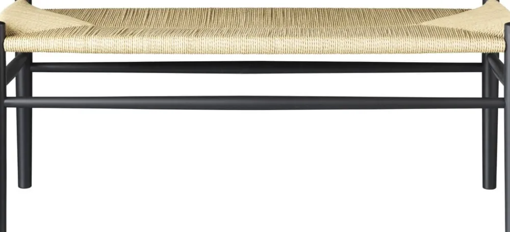 J83B Bænk designet af Jørgen Bækmark Designet fra Jørgen Bækmarks ikoniske stole gav også inspiration til en smuk lille bænk, der både kan bruges som en fodskammel med ekstra plads og en selvstændig bænk. Bænken kan stå som et møbel i dagligstuen eller i soveværelset. I entréen er den både smuk og praktisk, når man skal have sko og støvler på. Eller i køkkenet kan den give plads til et par små siddepladser. Designet og materialevalget giver stærke referencer til de mest kendte klassiske møbler, men den er samtidig et møbel i sin egen ret. C35b Jørgen Bækmark Bænk Designer: Jørgen Bækmark Type: Bænk Model: J83B Materiale: Bøg / flet Farve: Sort / natur Behandling: Lakeret Leveres samlet: Samlet Vedligeholdelse og pleje: Aftørres med opvredet klud Sædedybde i cm: 37,0 Ydermål på ben, i cm: 100,0 Mål: Højde x Bredde x Dybde: 41,0×100,0x37,0 Kan stables: Nej