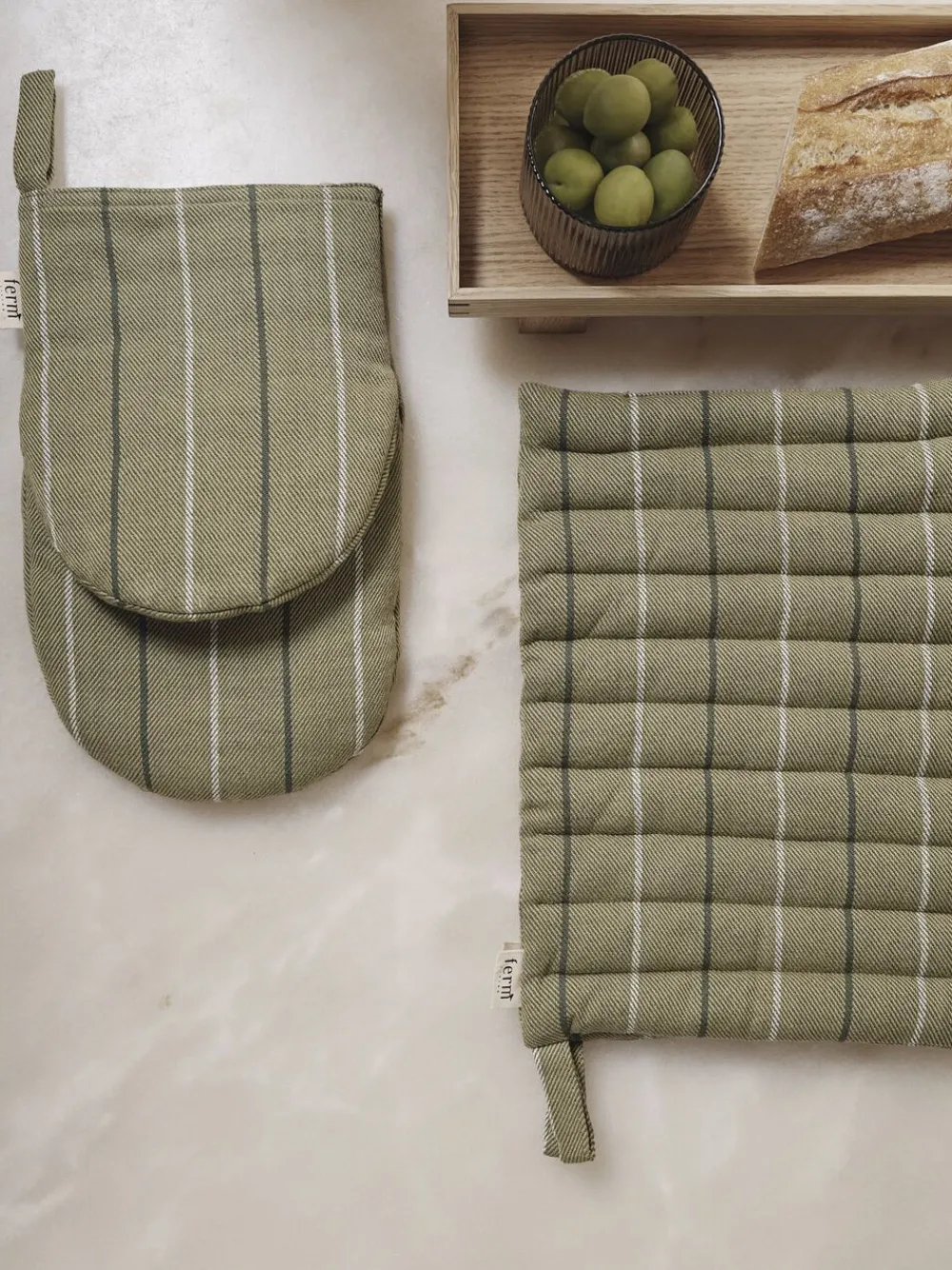 Ito familien præsenterer en moderne fortolkning af traditionelle køkkentekstiler. Ito Grydelap er fremstillet af økologisk bomuld, og fyldet er af genbrugspolyester. Den enkle, rektangulære form sikrer brugervenlighed, mens designet har et sart stribet mønster med en tofarvet twillvævning. De sælges i sæt af to.