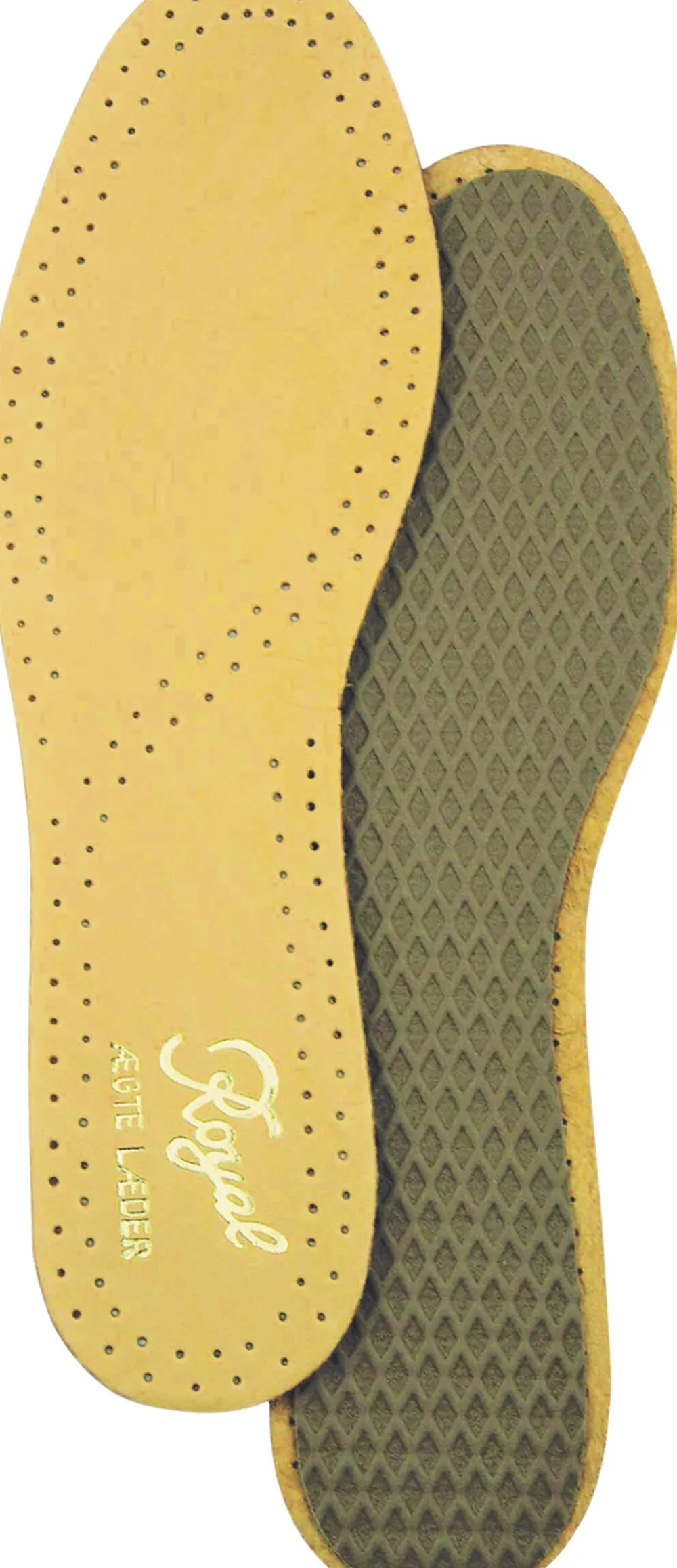 Eksklusiv ægte skindsål med blødt latexunderlag som giver rigtig god komfort. Ideel til pænere fodtøj.