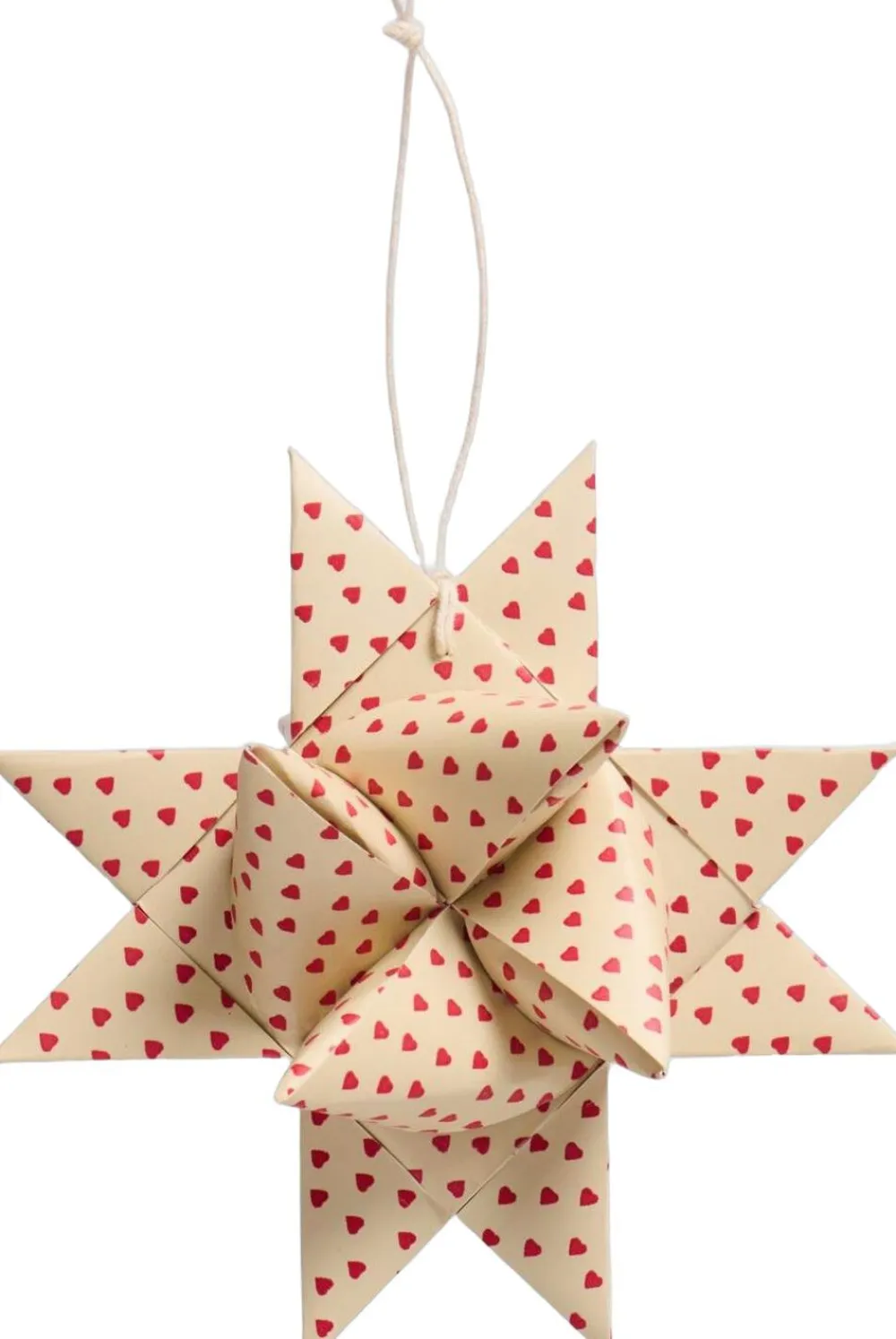 Flettet stjerne t/ophæng lille m/røde hjerter>Ib Laursen Online