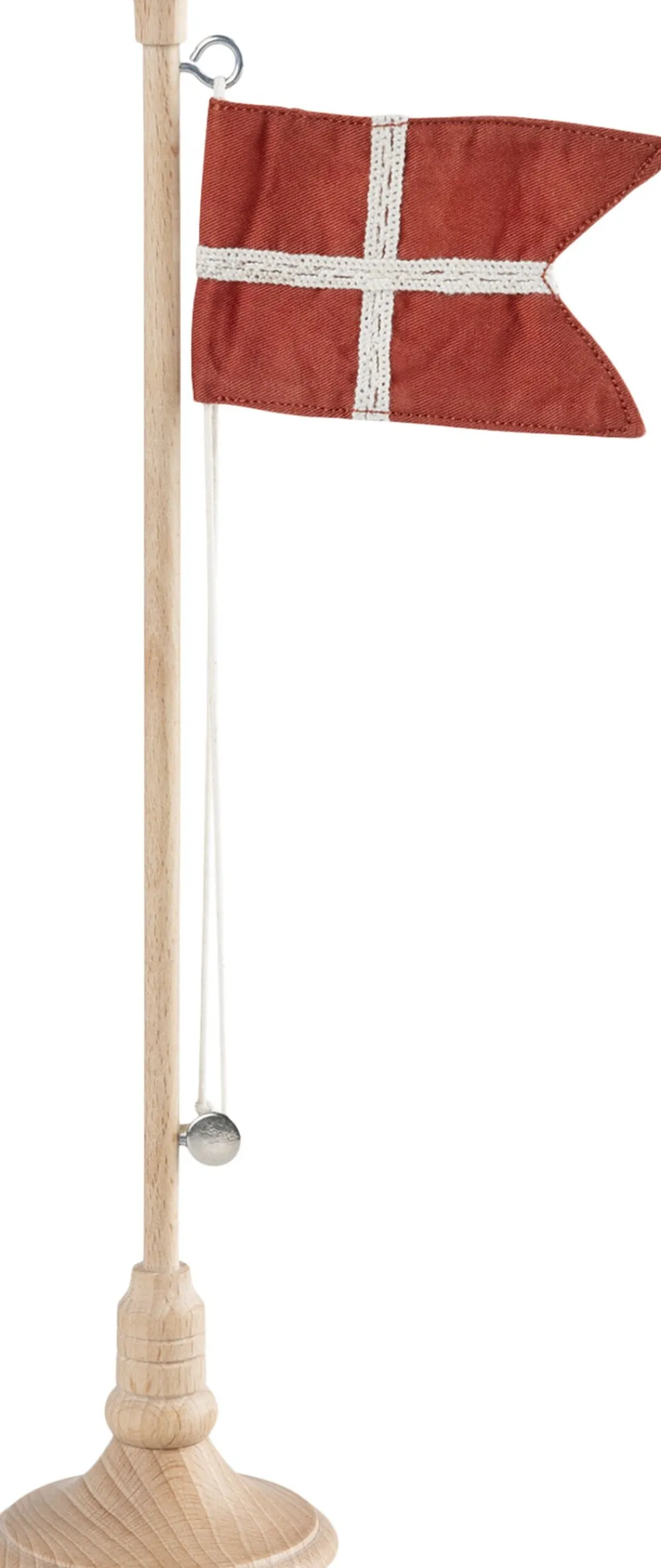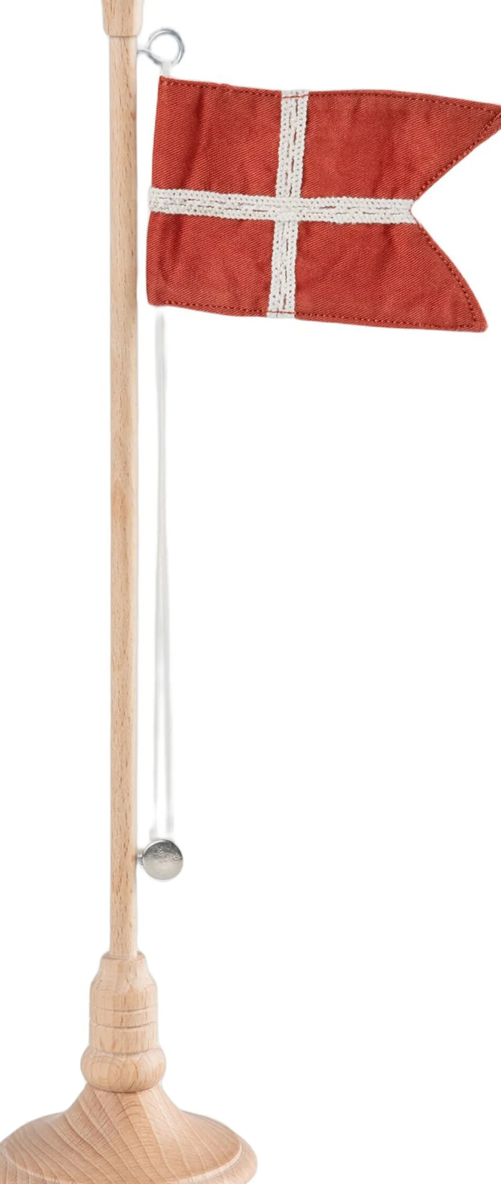 Fødselsdage er noget særligt, og det fine bordflag er perfekt at sætte på fødselsdagsbordet uanset fødselarens alder. Flagstangen er drejet i certificeret træ og har fine detaljer, der understreger det nostalgiske udtryk sammen med det mørkerøde dannebrogsflag i økologisk bomuld.