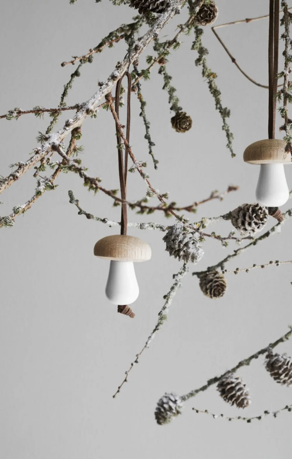 Pynt op med naturens symboler på årstidernes skiften og kærlig eftertænksomhed. Med Rosendahl Forest Tales inviterer du enkelt og minimalistisk den nordiske natur indenfor og hylder den simple og stilrene jul i tidløst design, der holder. Blandt de stilrene ornamenter finder vi svampen, der er smukt udført med en top i egetræ, mens den hvide bund i malet træ er udformet, så den lyser op som sne. Den smukke skulpturelle form er et symbol på vækst og forfald, der markerer vintersolhverv og overgangen fra de lange mørke vinterdage til forårets komme og lysere dage. I denne skiftende årstid søger mange af os indenfor. Mens vi finder os til rette i varmen, kan vi kigge mod juletræet, vindueskarmen, grenene i vasen eller præcis der hvor du allerbedst synes, at svampen er med til at skabe en naturlig, autentisk og nordisk jul fuld af kærlighed og nærvær.