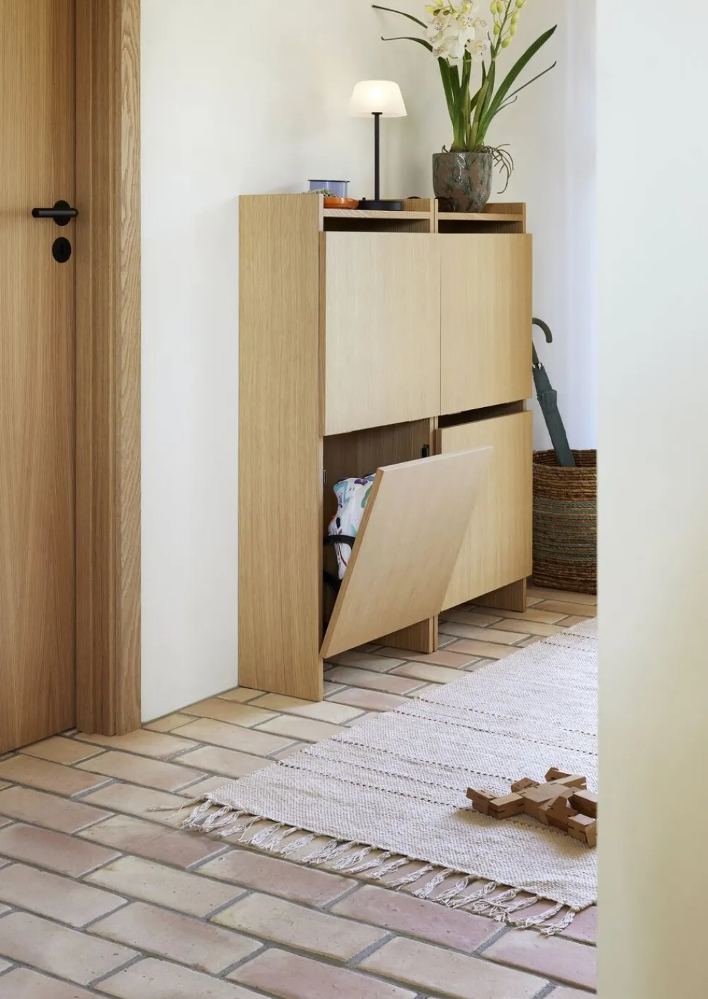 Mød det nyeste medlem af Forma-familien – Forma Skoskab. Designet er både funktionelt og æstetisk tiltalende med to-lags opbevaring af sko, ideelt til mindre entréer. Dette stilrene skoskab er lavet af træ, og bidrager til et elegant udtryk i dit hjem. Hvis du har en stor skosamling, kan du nemt kombinere to skabe for at øge opbevaringskapaciteten. Det minimalistiske design sikrer, at dine sko er organiseret og dit hjem ser ryddeligt ud.