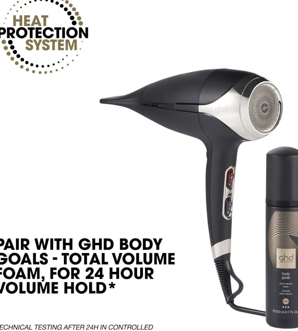 Det indvendige aerodynamiske design skaber glattere salonresultater med Aeroprecis-teknologi, og det skræddersyede mundstykke giver en meget koncentreret luftstrøm for ultimativ stylingkontrol. ghd helios-føntørreren er velegnet til alle hårtyper, herunder hår med struktur.