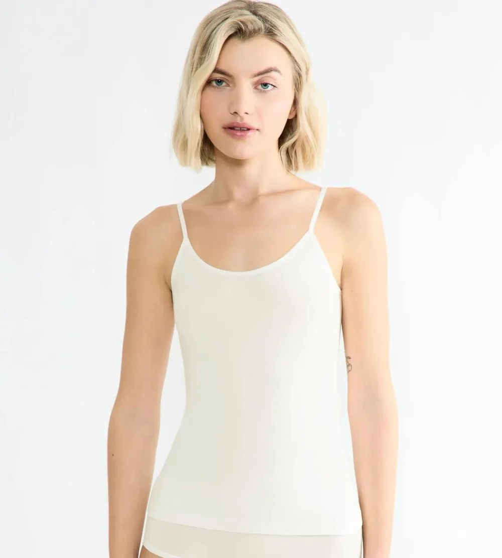 Oplev vores nye GO Sense Spaghetti Top. Den er fremstillet af naturligt superblødt TENCEL Modal og giver en fantastisk fornemmelse og fremragende komfort. Et sømløst design og flade kanter sikrer et flot, usynligt look. Den firkantede halsudskæring giver et flot, moderne touch til din hverdagsgarderobe.