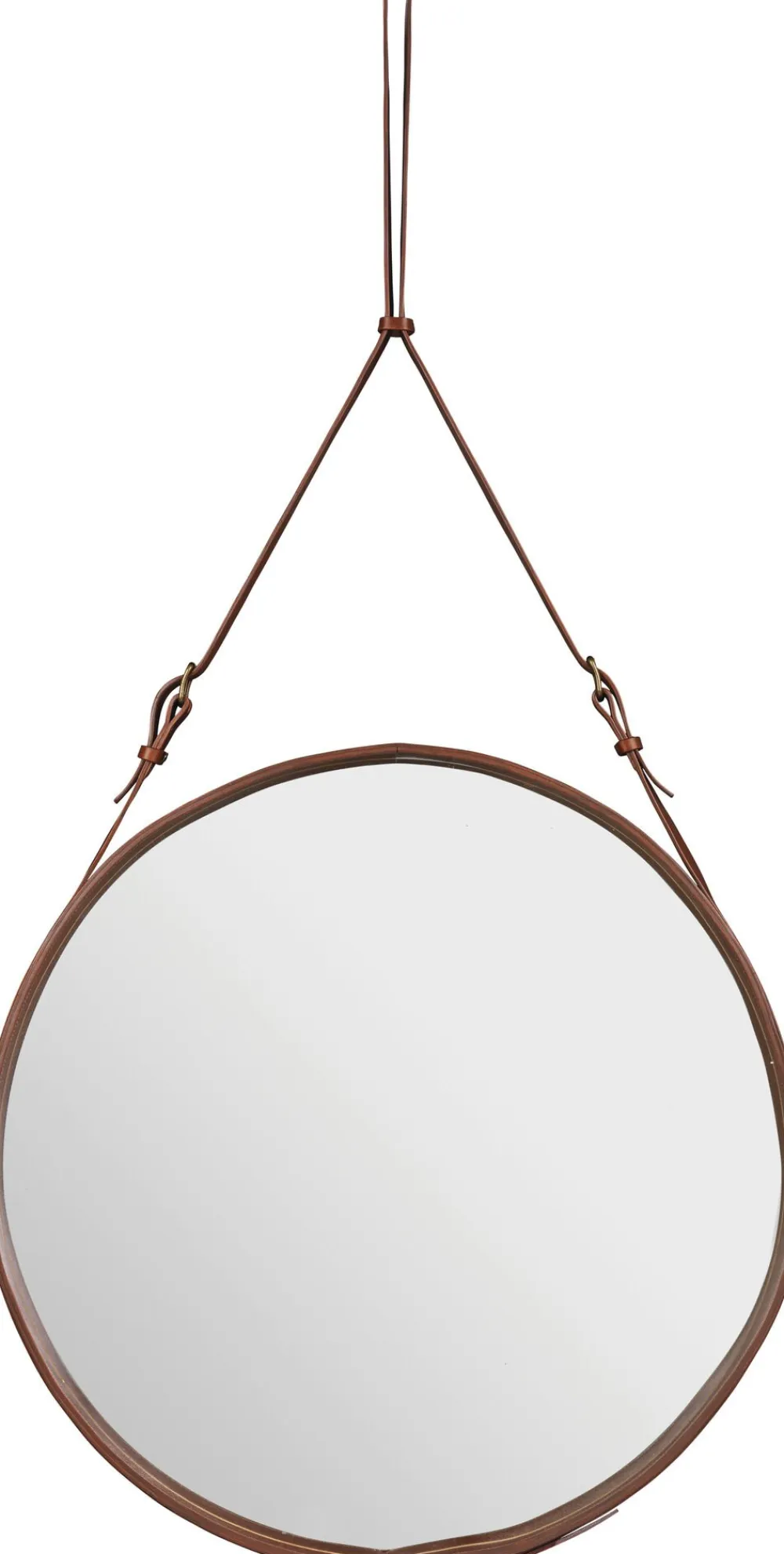 Art Deco er en eklektisk kunst og design stil, der begyndte i Paris i 1920’erne og blomstrede op internationalt gennem 1930’erne ind i 2. Verdenskrigs æra. Jacques Adnet er møbeldesigner og er bedst kendt for sit Art Deco modernistiske design, og et ikon af fransk modernisme. Adnet er kendt for sine avantgarde design, og var en af de første til at integrere metal og glas i strukturen og udsmykningen af møbler. Hans stil er indbegrebet af luksus. I 1950 dannede Adnet et partnerskab med det franske modehus, Hermes, hvor han udviklede en samling af læderbetrukne møbler og boligtilbehør. Derfor lavede han det runde læder spejl med messing hængsler. Udover de bemærkelsesværdige læder og messing detaljer er spejlet også enestående, da remmen, der holder spejlet, er den direkte dimension direkte i forhold til spejlet.