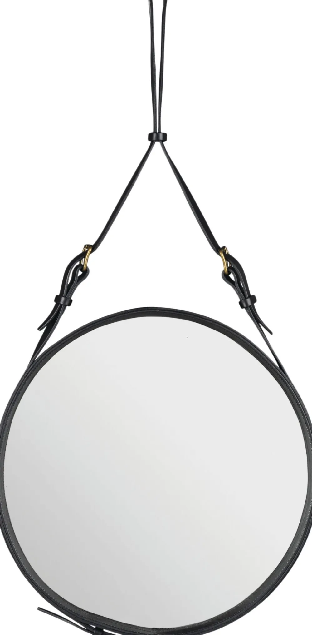 Art Deco er en eklektisk kunst og design stil, der begyndte i Paris i 1920’erne og blomstrede op internationalt gennem 1930’erne ind i 2. Verdenskrigs æra. Jacques Adnet er møbeldesigner og er bedst kendt for sit Art Deco modernistiske design, og et ikon af fransk modernisme. Adnet er kendt for sine avantgarde design, og var en af de første til at integrere metal og glas i strukturen og udsmykningen af møbler. Hans stil er indbegrebet af luksus. I 1950 dannede Adnet et partnerskab med det franske modehus, Hermes, hvor han udviklede en samling af læderbetrukne møbler og boligtilbehør. Derfor lavede han det runde læder spejl med messing hængsler. Udover de bemærkelsesværdige læder og messing detaljer er spejlet også enestående, da remmen, der holder spejlet, er den direkte dimension direkte i forhold til spejlet.