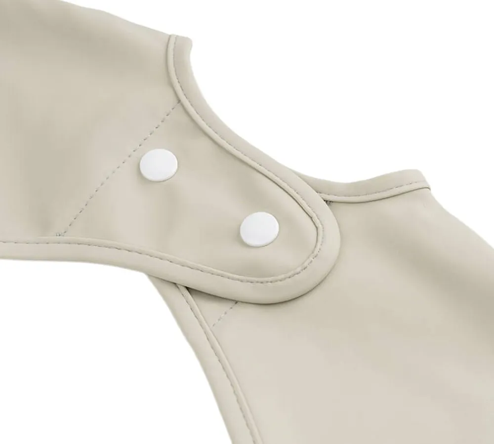 Hagesmækken med lange ærmer og en lomme vil beskytte dit barns tøj ved spisetid eller når I leger med maling, modellervoks eller andre kreative sager. En justérbar dobbelt-lukning sikrer, at hagesmækken passer til både babyer og tumlinger. Den bløde hagesmæk er vandtæt og har praktiske ærmer med elastik, der holder de små tørre. Den er nem at tørre af og holde ren, hvilket sparer dig for en masse vasketøj. Den søde sandfarvede hagesmæk er dekoreret med Lalee og en sjov kaktus.