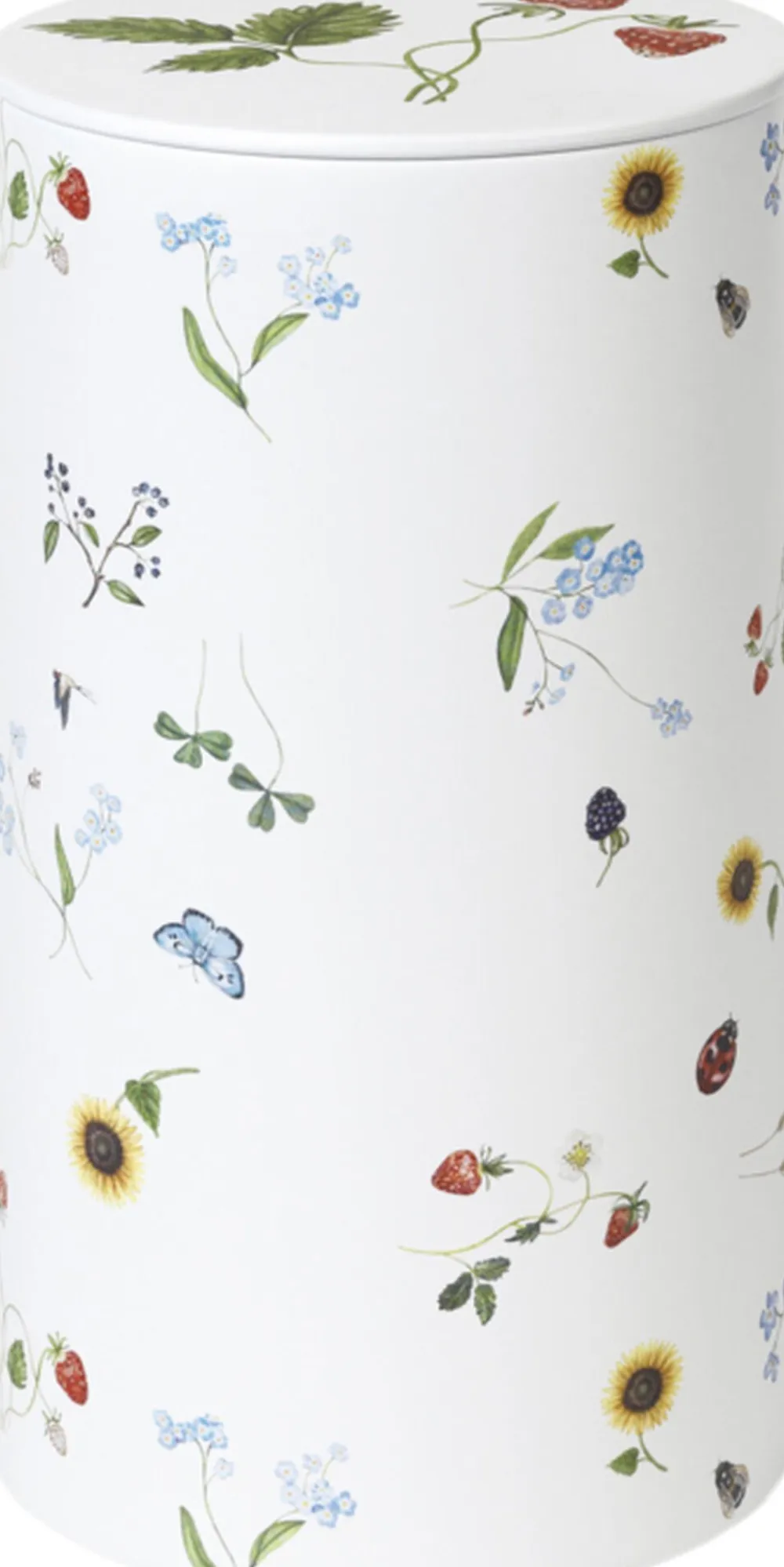 Blomstrende farver, former og følelsen af en autentisk sommerstemning. Med Hammershøi Summer fra Kähler kan du næsten mærke solens stråler og den varme sommerbrise, når du sætter bordet til kaffe og lækkerier på terrassen, balkonen eller i sommerhuset. Hammershøi Summer er inspireret af de danske somre eventyrlystne former, farver og følelser, og i 2025-sæsonen har en smuk og stemningsfuld symfoni af de eksisterende motiver i Hammershøi Summer-serien fundet vej ind i et par stilfulde opbevaringsdåser. Denne Hammershøi Summer opbevaringsdåse, smukt dekoreret i metal og prydet med en symfoni af forskellige Hammershøi Summer motiver, måler 18,5 cm i højden og er perfekt til kiks eller andre lækkerier til dig selv eller dine sommergæster, uanset om du efterlader den på hylden i køkkenet, bringer den til bordet eller blot ønsker at tilføje masser af autentisk sommerkomfort til dit hjem og omgivelser. Illustrationerne er placeret rundt om tinen, hvilket skaber et sødt billede af de mange fine blomster og forskellige sommerfugle. Symfonitemaet er malet på metallet på samme måde som de andre temaer i Hammershøi Summer-serien, hvor planter og blomster nærmest bevæger sig spontant hen over de klassiske riller på de hvide keramiske stykker. Det er som om de næsten spirer, næsten danser over overfladen med deres forskellige asymmetriske retninger. Hvis du allerede har andre stykker i Hammershøi Summer-serien, vil opbevaringsformene med symfonitemaet være smukke tilføjelser til de andre temaer og fuldende en munter og hyggelig sommeratmosfære på bordet, mens du nyder den autentiske nostalgi i Kählers håndlavede Designtraditioner. Motiverne er skabt af kunstner Rikke Jacobsen på det eksisterende Hammershøi bordservice designet af Hans-Christian Bauer. Med sine smukke akvareller skaber hun detaljerede motiver, hvor flora og fauna er de vigtigste temaer, der perfekt indfanger naturen og årstiderne omkring os.