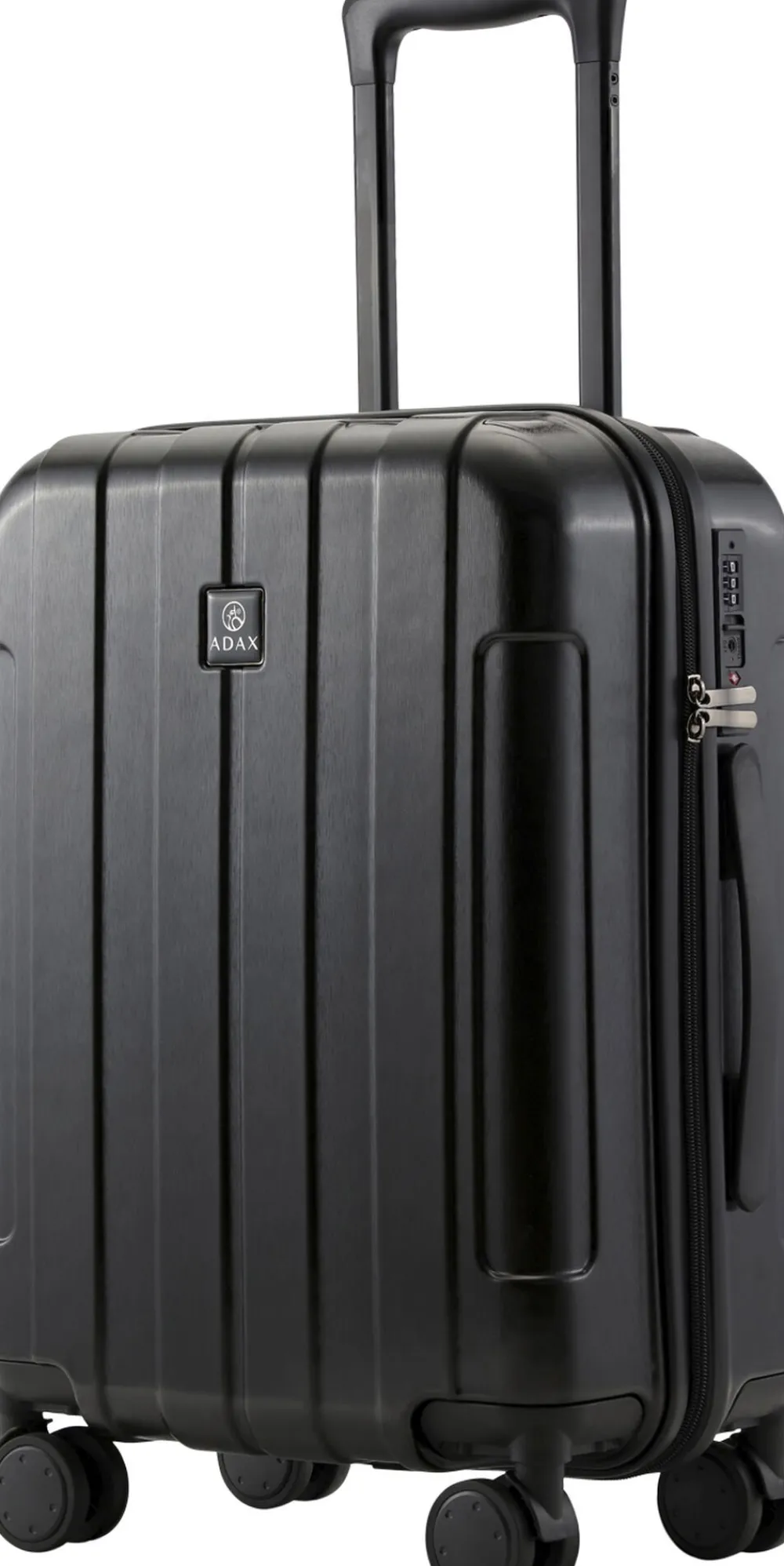 Adax kuffert. Tidsløs hardcase kuffert med indbygget TSA-lås, Med en TSA lås kan toldere altid tjekke din bagage hvis nødvendigt. Kufferten lukkes med 2 lynlåse. Kufferten har både håndtag i top og side samt teleskophåndtag som gør det behageligt at transportere kufferten. Kufferten har 4 dobbelhjul med 360 graders spin. Indvendig er kufferten opdelt i to store rum, i den ene side med et elastisk krydsbånd, som holder tøjet på plads. Rummene er adskilt af en en praktisk lynlås lomme som holder styr på alle småtingene du har med på rejse. Lommen holdes fast med en lynlåslukning. Foeret er produceret i recycled materiale.