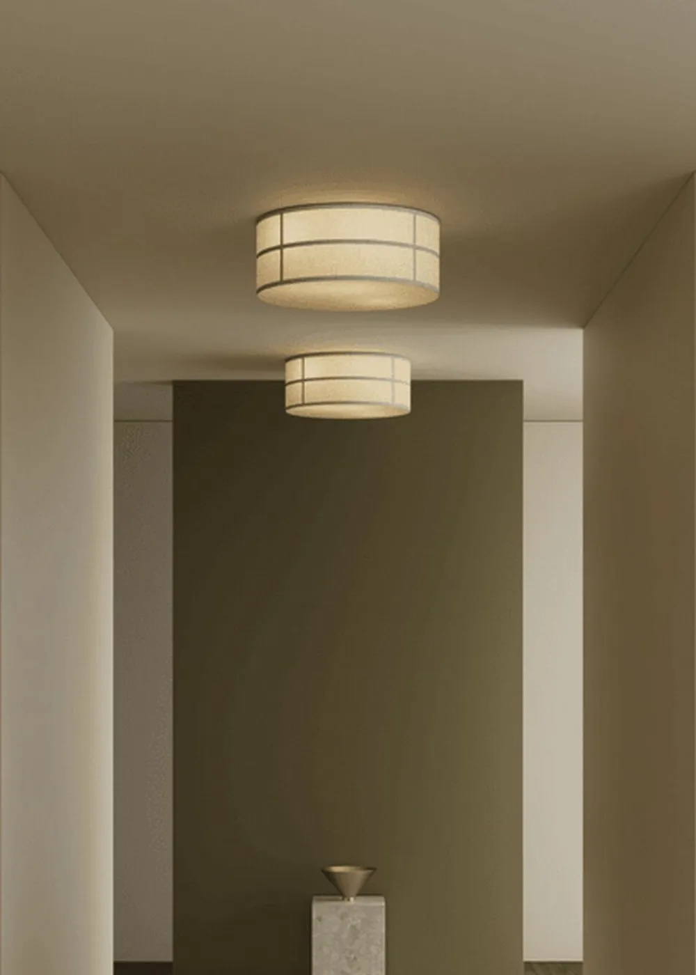 Hashira loftslampen, der sidder i flugt med loftet, reducerer belysningskollektionens karakteristiske elementer til deres reneste former og skaber et Design, der er lige så diskret, som det er sofistikeret. Den udsender omgivende lys ind i rum, spredt gennem sin teksturerede linned skygge. Bulb ikke inkluderet.