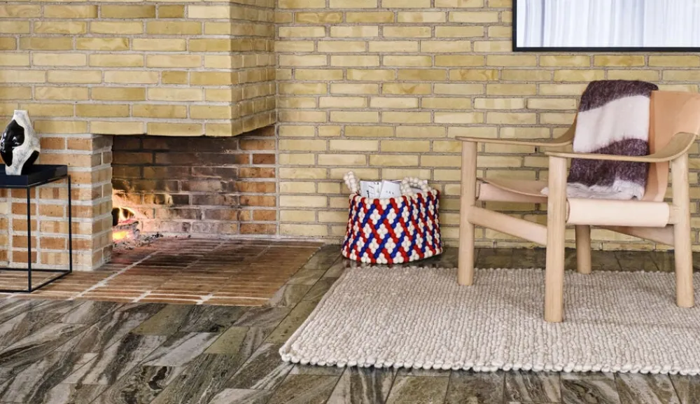 Peas Random tæppet er vævet i Indien ved hjælp af håndrullede uldkugler. Uldkuglerne i tæppet er i forskellige størrelser, hvilket er med til at skabe en uregelmæssig struktur og et mere organisk udtryk.
