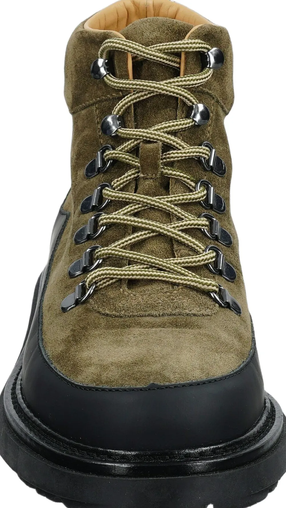 Den tidløse, men robuste arbejdsstøvle med kontrastsyninger og en profileret gummisål er en pålidelig følgesvend i al slags vejr. Det øverste materiale er ruskind af høj kvalitet med iøjnefaldende gummibelægninger og snørehuller i vandrestøvler. Leveres med en indersål i læder