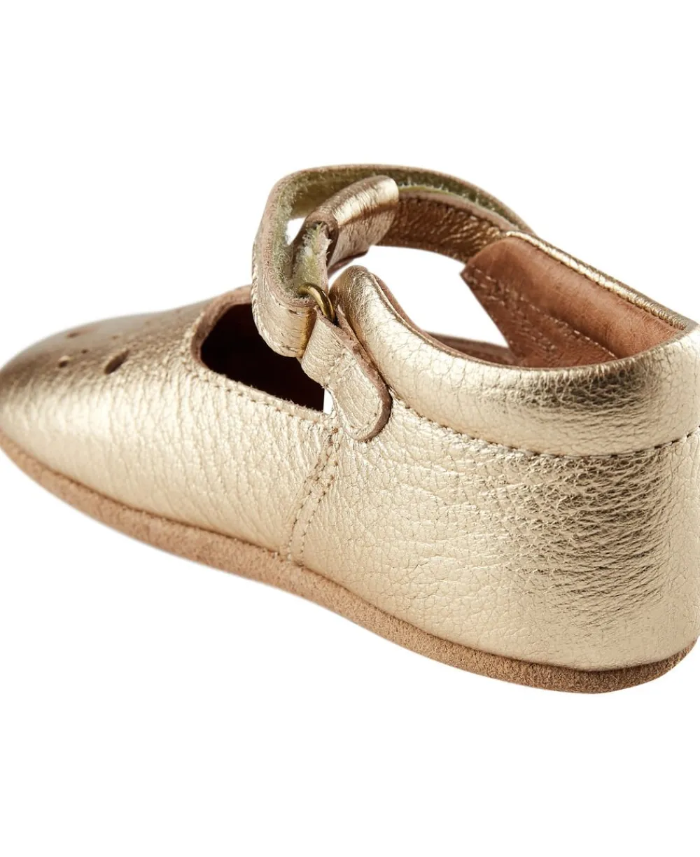 De fineste sko fra Bisgaard i det blødeste skind med hulmønster på fronten. Modellen er helt enkel med blød hælkant, velcrolukning samt blød, skridsikker gummisål.