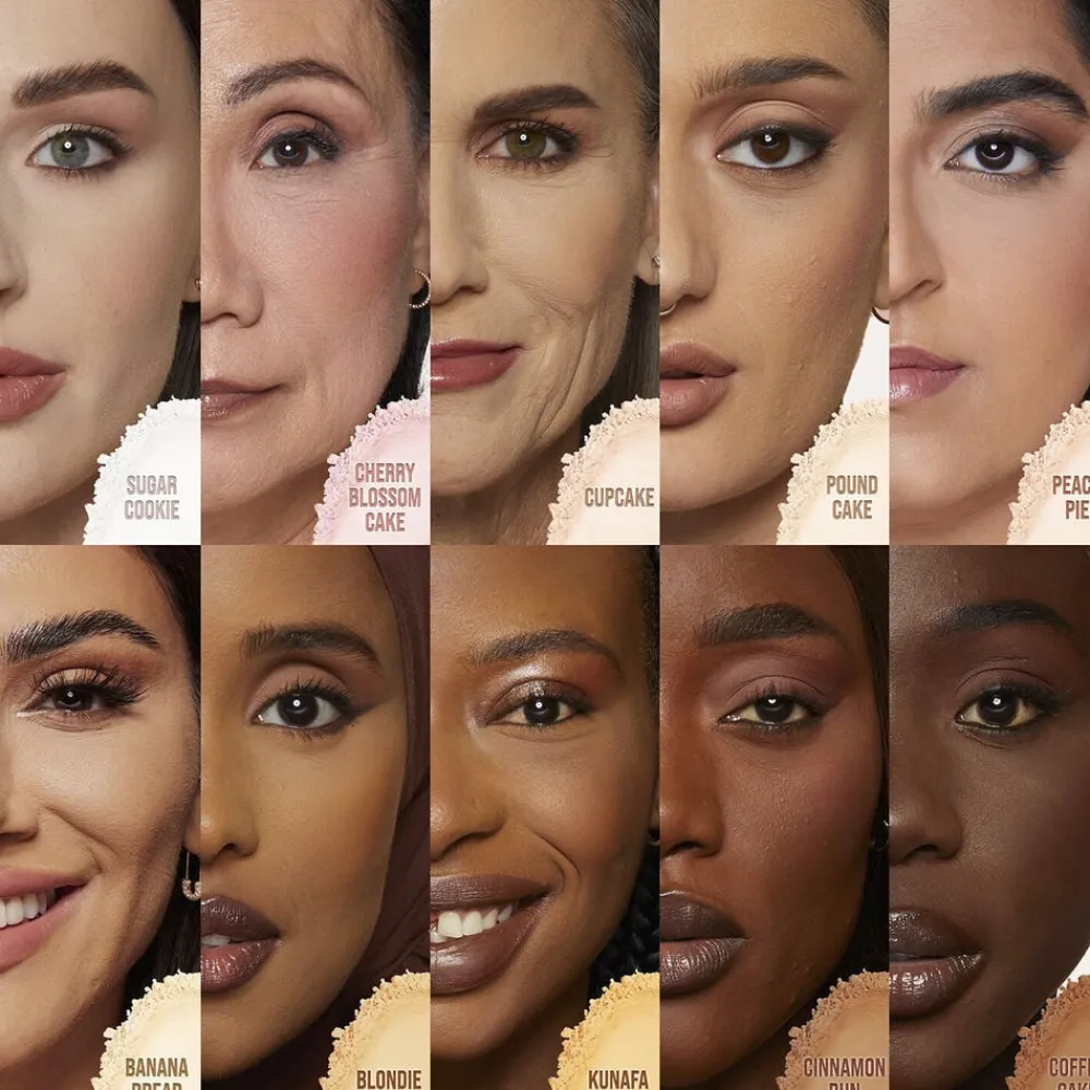Huda Beauty har skabt otte nuancer, fyldt med ultraraffinerede pigmenter, for at sikre den rette pasform til alle hudtoner. Pudderne virker til at farvekorrigere og fremhæve forskellige konturer i ansigtet på en subtil måde og efterlader et gennemsigtigt slør af farve på din hud – so you can bake, without the cake!