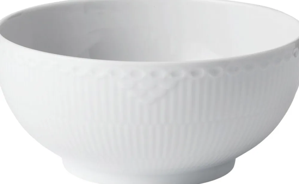 Klassisk serveringsskål i en perfekt medium størrelse i et enkelt og elegant udtryk. Skålen har samme form som de eksisterende serveringsskåle fra både Hvid Riflet og Halvblonde serierne og passer derfor perfekt på bordet med de øvrige skåle.