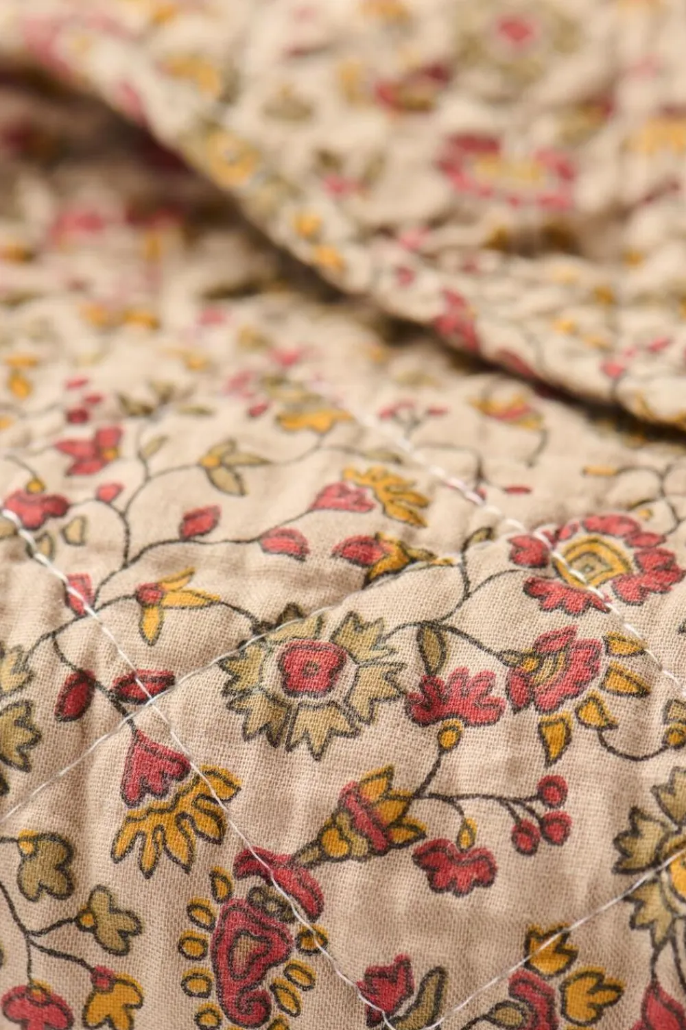Ib Laursen Quilt brun m/røde, orange og grå blomsterranker Best