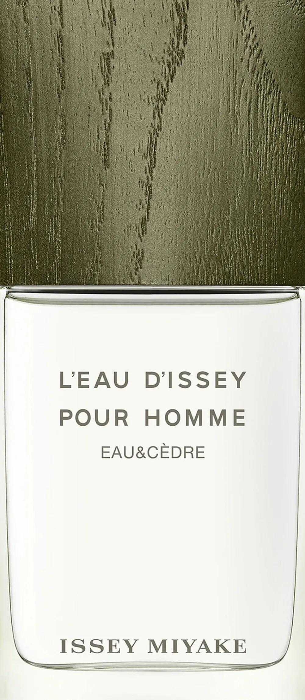 Et sandt møde mellem elementerne vand og træ. Vandets friskhed står i kontrast til det tørre og livlige cedertræ. Den former og afslører den energiske essens af dens saft. Et nyt møde mellem rent vand og den sanselige natur. L´Eau d´Issey Eau & Cèdre Eau de Toilette Intense er en enkel og levende komposition. Topnoterne består af kardemommens brændende friskhed. Hjertenoterne afslører en akvatisk harmoni formet af det ru cedertræ. Basenoterne består af træagtige og majestætiske noter af vetiver- og patchouli-essens. Issey Miyake ønskede at præsentere L´Eau d´Issey pour Homme på en flakon, der kunne overskride tidens og modens grænser, og L´Eau d´Issey pour Homme Eau & Cèdre hylder denne flakon på sin helt egen unikke måde. En minimalistisk flakon, der vender tilbage til det væsentlige, prydet med et strejf af persimmon og toppet med en hætte af træ, der gentager den rå, uberørte natur, der har inspireret den. Flasken er lavet af 20% genanvendt PCR-glas. Hver træhætte, lavet af ask, er unik med hensyn til farve og årer. Selve duften er vegansk og lavet af 91% naturlige ingredienser.
