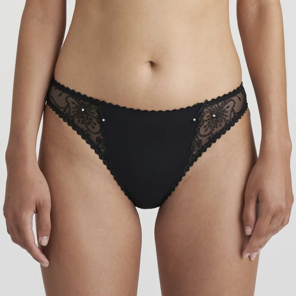 Smuk klassiks Rio trusse i serien Jane. Et smukt mix af elegant blonde og blød og behagelig microfiber. Rio trussen har ikke blonde på numsen, så en rigtig behagelig hverdags trusse. Jane er en af Marie Jos mest ikoniske serier – som altid kommer i et hav af sæson farver. Men glem aldrig basis lingerie skuffen. Som du her kan fylde op med Jane i elegant forførende sort. Der findes mange forskellige trusser til serien Jane, helt sikkert også en til dig.