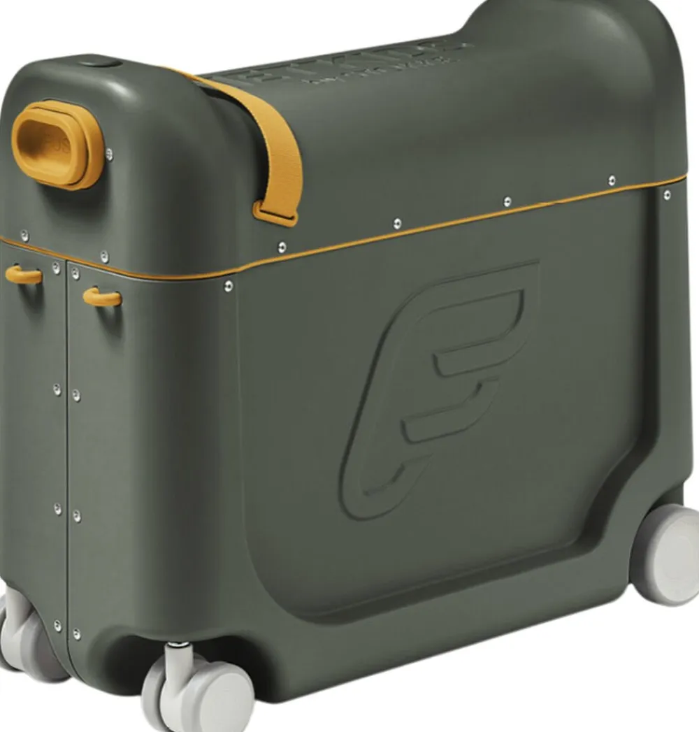 BedBox er verdens eneste ride-on kuffert til børn, der kan bruges som en flyseng eller benstøtte.