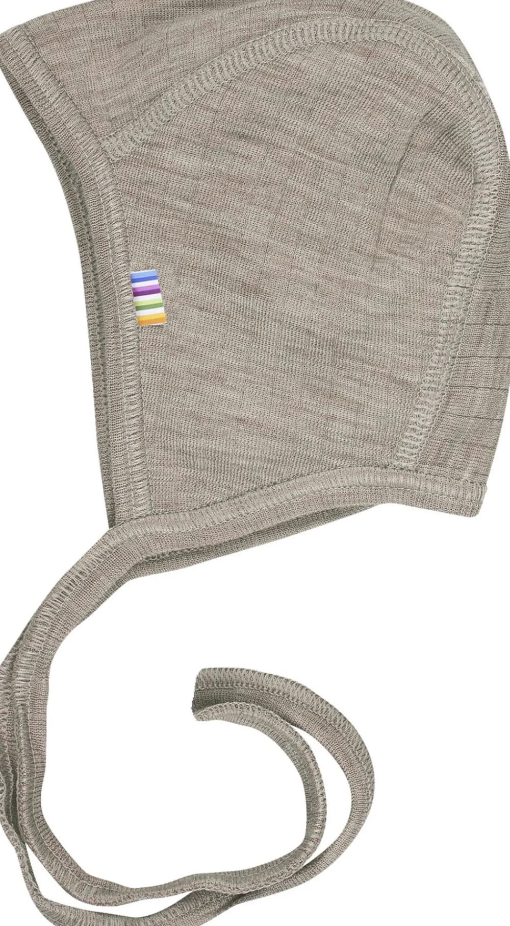Hjelm med bindebånd. Dobbelt lags. Ensfarvet. Blød, elastisk let uldkvalitet med lodret rille mønster som er behagelig at have. Pure merino wool og Nordic Ecolabel mærket.