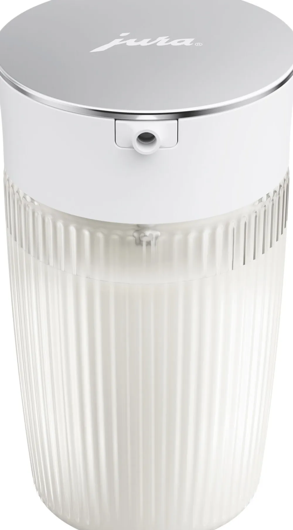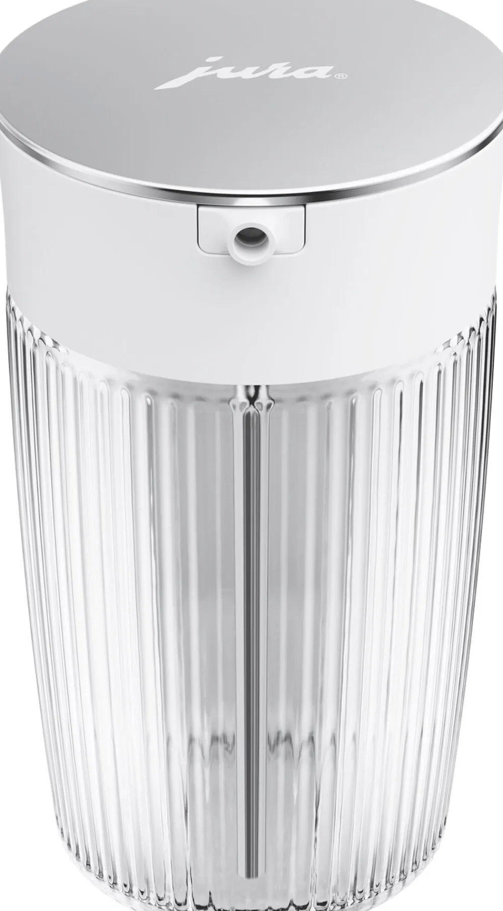 Glasmælkekaraflen kan anvendes med alle JURAs fuldautomatiske kaffemaskiner. Den er ideel til alle os, som foretrækker kaffe tilsat mælk eller en plantebaseret drik, og som ønsker at spare plads i køkkenet. Den rillede overflade er et af designets højdepunkter ud over, at det også er en funktionel detalje, som sikrer et godt greb om glasmælkekaraflen.