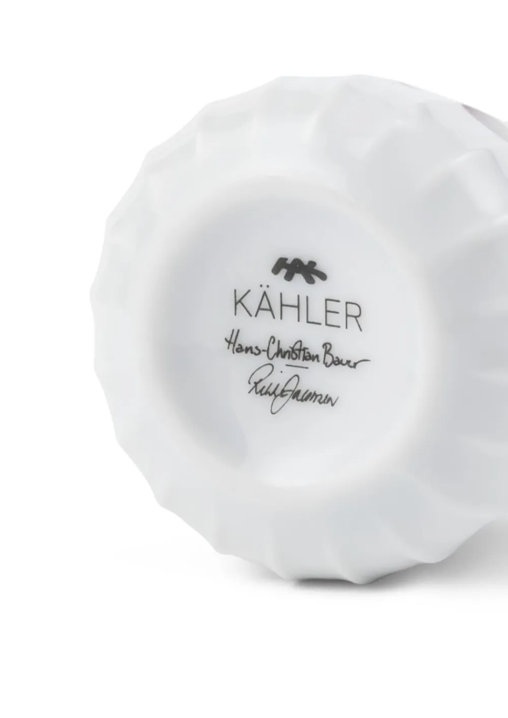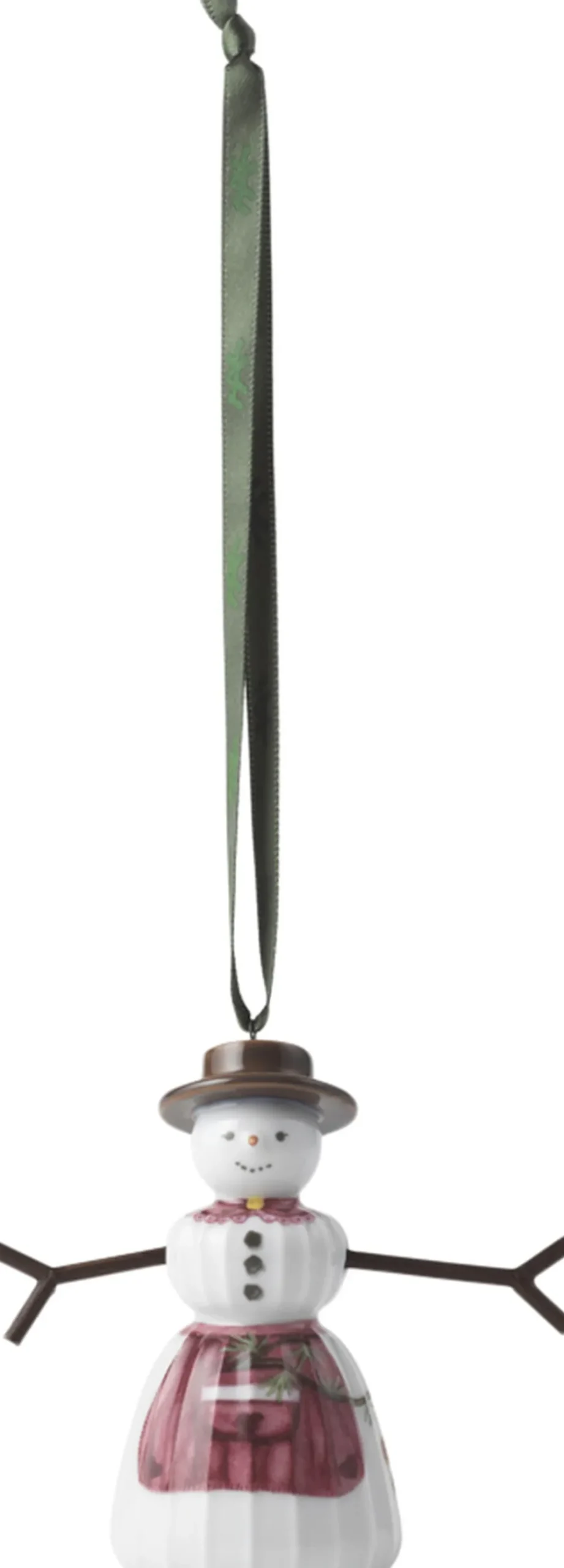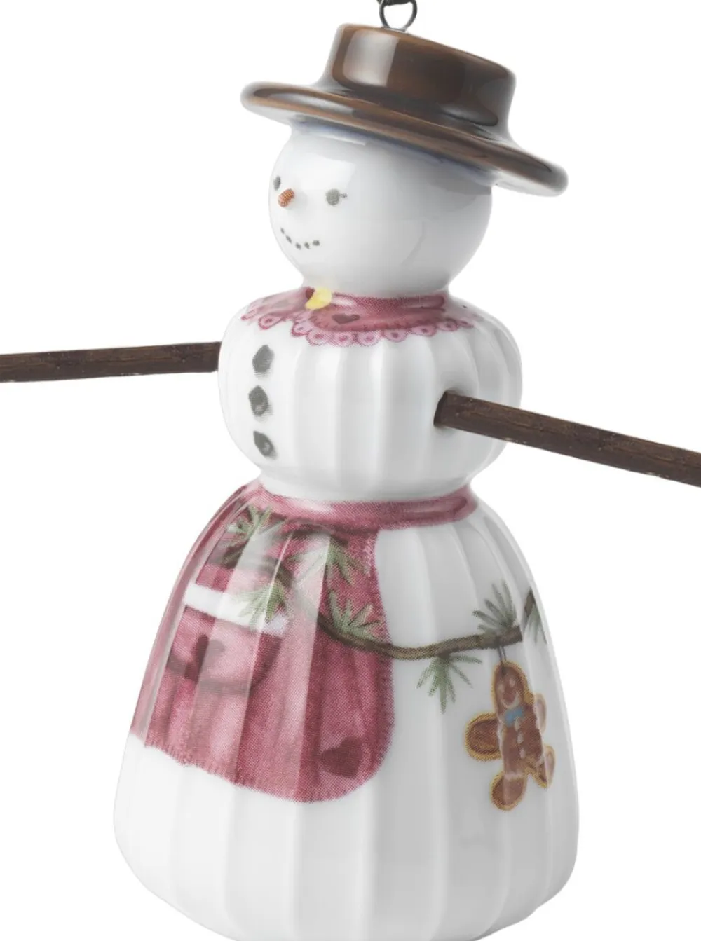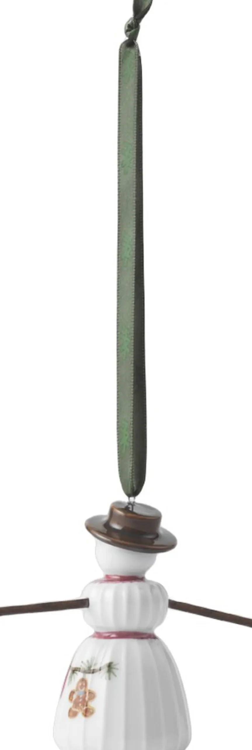 Juletraditioner og håndværkstraditioner i skøn forening. Med familien af snemænd fra Kählers juleserie Hammershøi Christmas bringer du enkelt og autentisk julestemningen ind i boligen med glade smil og hyggelige julemotiver, der matcher seriens øvrige dele og fuldender julehyggen, samtidig med at du kan nyde nostalgien i Kählers håndlavede designtraditioner. Gå en tur i haven, parken eller skoven og find jeres egne små kviste, der kan bruges som arme til seriens søde figurer. Måske som en ny, hyggelig juletradition den 1. december. På den måde bliver snemændene endnu mere personlige og betydningsfulde. Vær opmærksom på at de medfølgende arme til både den stående og hængende familie af snemænd udelukkende er vedlagt som inspiration til, hvordan du kan personliggøre dine Kähler-snemænd i din helt egen DIY-stil. Snekonen har selvfølgelig en høj hat på, som vi forbinder det med en klassisk snemand. Hun måler 9 cm i højden og 4,5 cm i diameter og er udformet i bløde linjer med Hammershøi-seriens ikoniske riller, der kendetegner Hans-Christian Bauers stel og bordpynt. Denne model er den hængende udgave af Snekonen, men du kan også få hende stående. Så der er frit valg. Lad hele familien pynte på juletræet eller på smukke grene i en flot vase eller skab dit eget snelandskab i vinduet, på hylden eller på julebordet. Kählers snemandsfamilie består af Snemanden, Snekonen, Snedrengen og Snepigen, der alle på forskellig vis er dekoreret med motiver fra Hammershøi Christmas-serien malet i akvarel af Rikke Jacobsen og overført til det snehvide porcelæn. Motiverne er klassiske julemotiver som julehjerter, kræmmerhuse og gaver i en autentisk, hyggelig og håndmalet stil, som man slet ikke kan undgå at komme i den helt rigtige julestemning af.