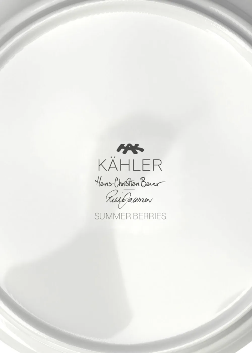 Med Hammershøi Summer fra Kähler kan du næsten mærke solens stråler og den lune sommervind, når du dækker op til kaffe og lidt lækkert på terrassen, altanen eller i sommerhuset. I delene med sommerbær finder du en tallerken med en diameter på 22 cm. Ligesom kruset og skålen i serien er den holdt i lyseblå nuancer og prydes af den yndige blomst forglemmigej, der er et symbol på kærlighed og venskab, og en sød blåmejse, der flyver ind og ud mellem blomsterne. Tallerkenen vil være et smukt supplement til de øvrige dele i serien også på tværs af temaer hvor den vil fuldende en glad og hyggelig sommerstemning på bordet, samtidig med at du nyder den autentiske nostalgi i Kählers håndlavede designtraditioner. Det er nemt at forestille sig tallerkenen som base for sommerklassikere som jordbærkage, en sprød salat fra haven eller en kartoffelmad med nye kartofler og masser af purløg. Motiverne er skabt af kunstner Rikke Jacobsen på Hammershøi-stellets eksisterende dele designet af Hans-Christian Bauer. Med sine smukke akvareller skaber hun detaljerige motiver, hvor flora og fauna spiller en gennemgående rolle og indfanger stemningen i naturen og årstiderne omkring os.