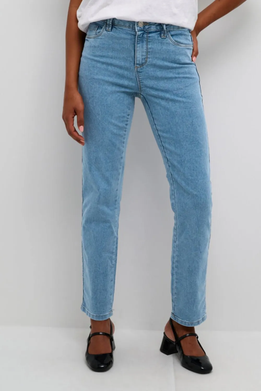 Tidsløse jeans i forskellige slags vask, der kan styles på utallige måder. Der er elastan i kvaliteten, som gør dem endnu mere behagelige at have på. Et par jeans, som man ikke kan undvære i garderoben. Anvend dem med et par sko med hæl og en feminim top til arbejde for et klassisk work-wear look eller en T-shirt i afslappet pasform sammen med sneakers for et mere casual udtryk.