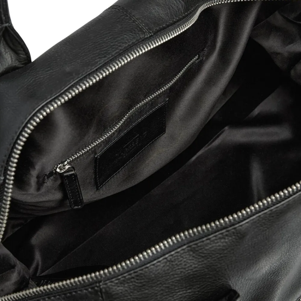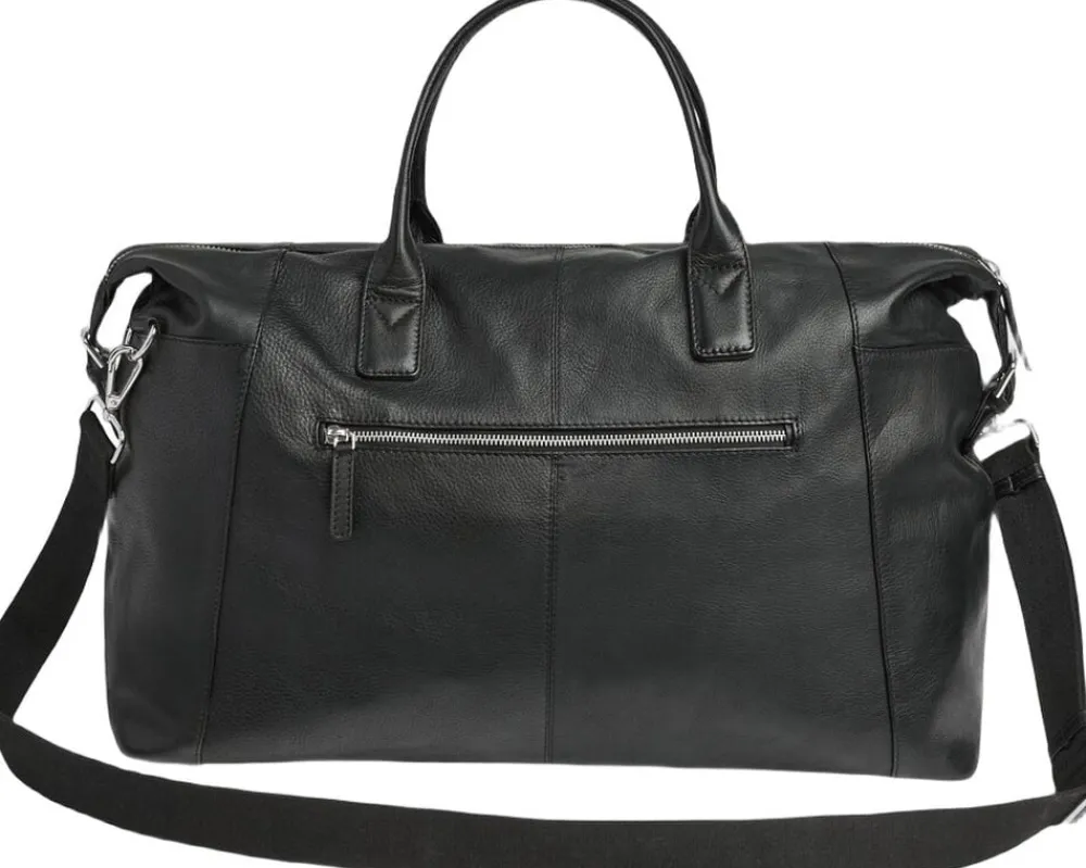 Kiefer Weekend Bag, 32L fra Markberg Man er en elegant og rummelig Weekendtaske i 100% blødt kalveskind. Et tidløst design med fokus på funktionalitet og kvalitet perfekt til både rejser og hverdag. Kvaliteten er LWG-certificeret og er en del af vores Zero Waste, hvor intet skind går til spilde i produktionen. Læderets struktur og nuance kan variere naturligt og giver tasken et unikt udtryk. På fronten har rejsetasken en stor synlig lynlåslomme, med plads til mindre ejendele. Det store hoved rum med lynlås, der kan rumme 32 liter, er der god plads til de ting du har med på rejsen, til træning eller til weekendopholdet. Indvendigt finder du også en lynlåslomme i den ene side. Bagpå tasken er der en lynlåslomme, hvor der er en luggage strap du kan tage frem, men til fastgørelse på din kuffert, når du er ude og rejse. Tasken har en bred justerbar og aftagelig skulderrem. Dertil har tasken to bærehanke, og taskens slidstærke for er i 100% polyester. Taskens hardware er i metal, som er belagt og så er det nikkelfri. Rejsetasken måler 50 cm x 30 cm x 21 cm.