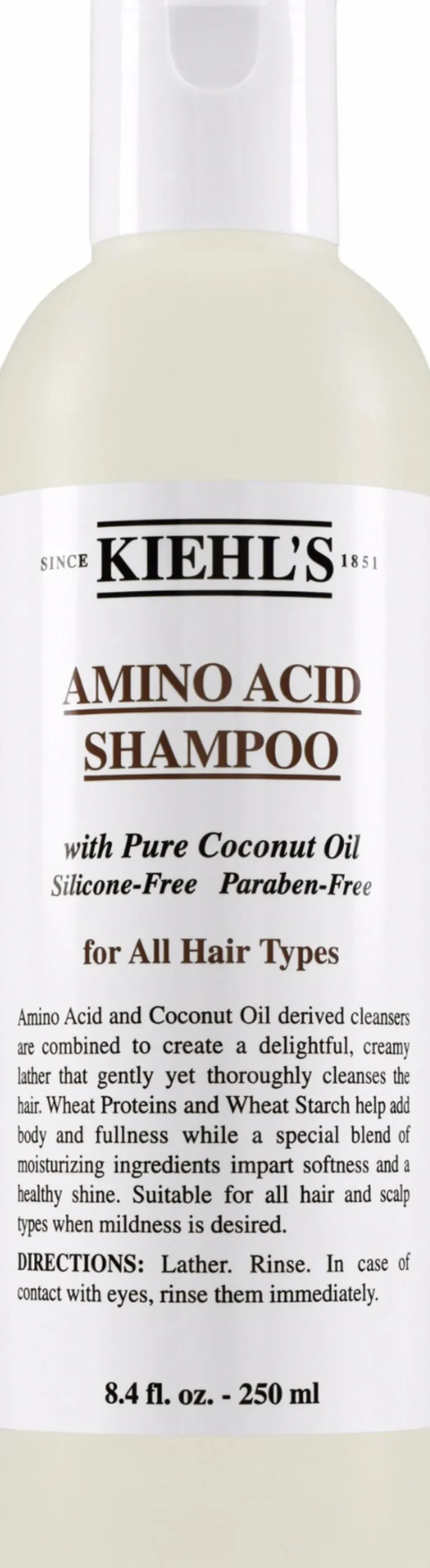 Kiehl’s Amino Acid. Shampoo velegnet til alle hår -og hovedbundstyper når man ønsker en mild shampoo. Giver en rig, cremet skum-oplevelse og består af en særlig blanding af fugtighedsgivende ingredienser der giver blødhed, glans og samtidig tilfører fylde til håret.