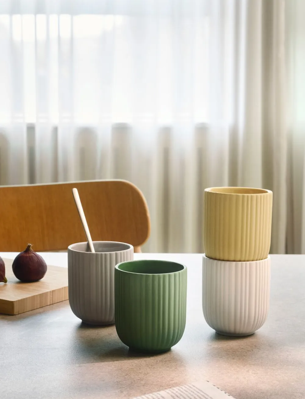 Knabstrup Keramik introducerer Verda koppen en perfekt illustration af, hvordan farver kan tilføre vores hverdag liv og energi. Fremstillet i holdbart stentøj, er Verda koppen både stilfuld og funktionel, da den tåler opvaskemaskine. Med sit enkle, elegante design og karakteristiske rillede overflade fås Verda koppen i et væld af smukke farver, der bringer festlig stemning til bordet. De fine glasurer og nuancer gør det let at mixe og matche, så du kan skabe en personlig farvepalet. Uanset om du er til blide pasteller eller kraftige farver, vil Verda koppen være en ideel tilføjelse til ethvert hjem.