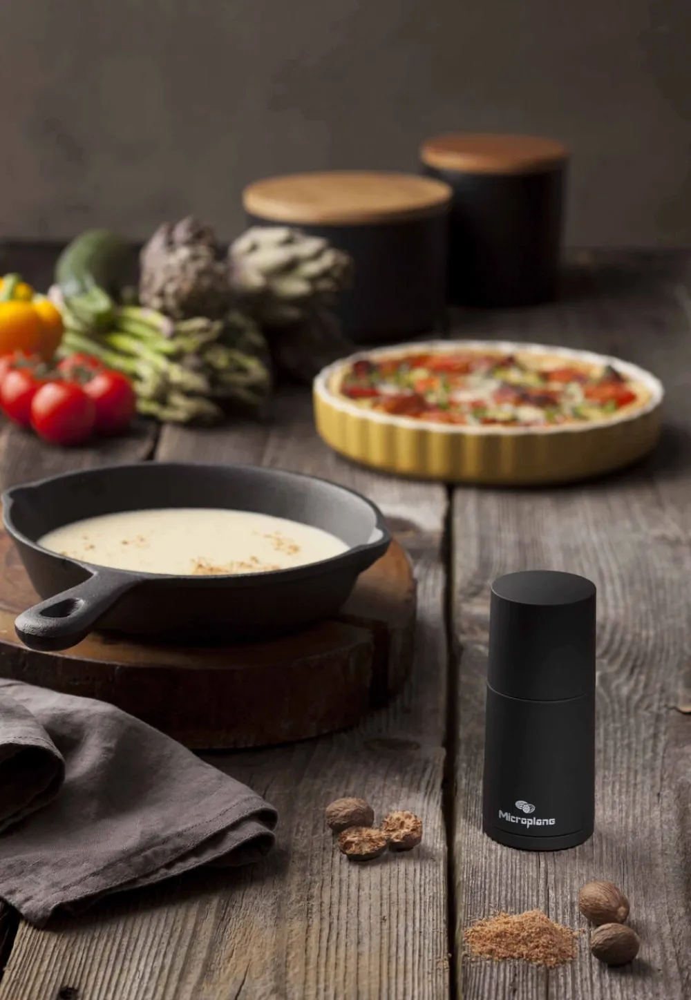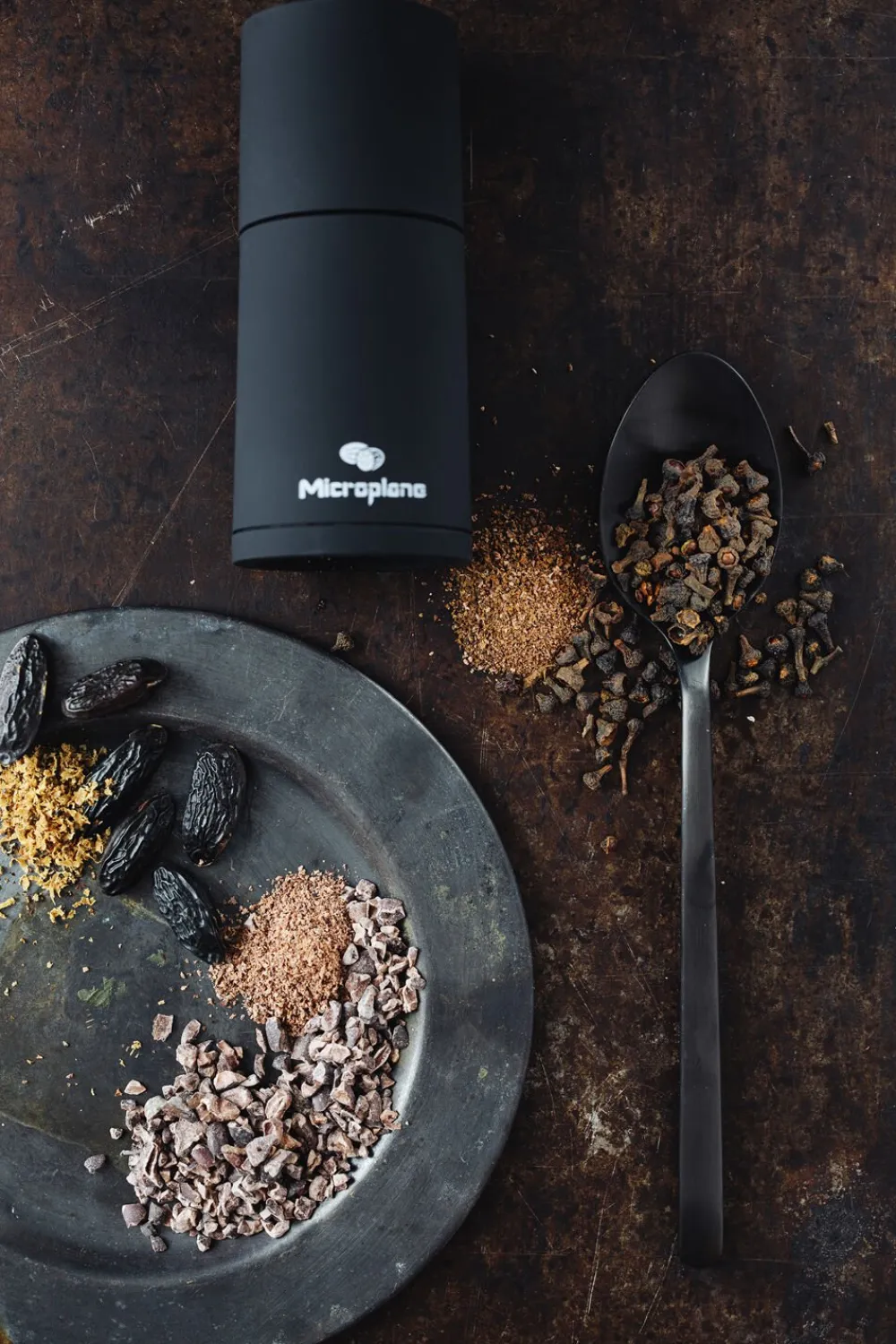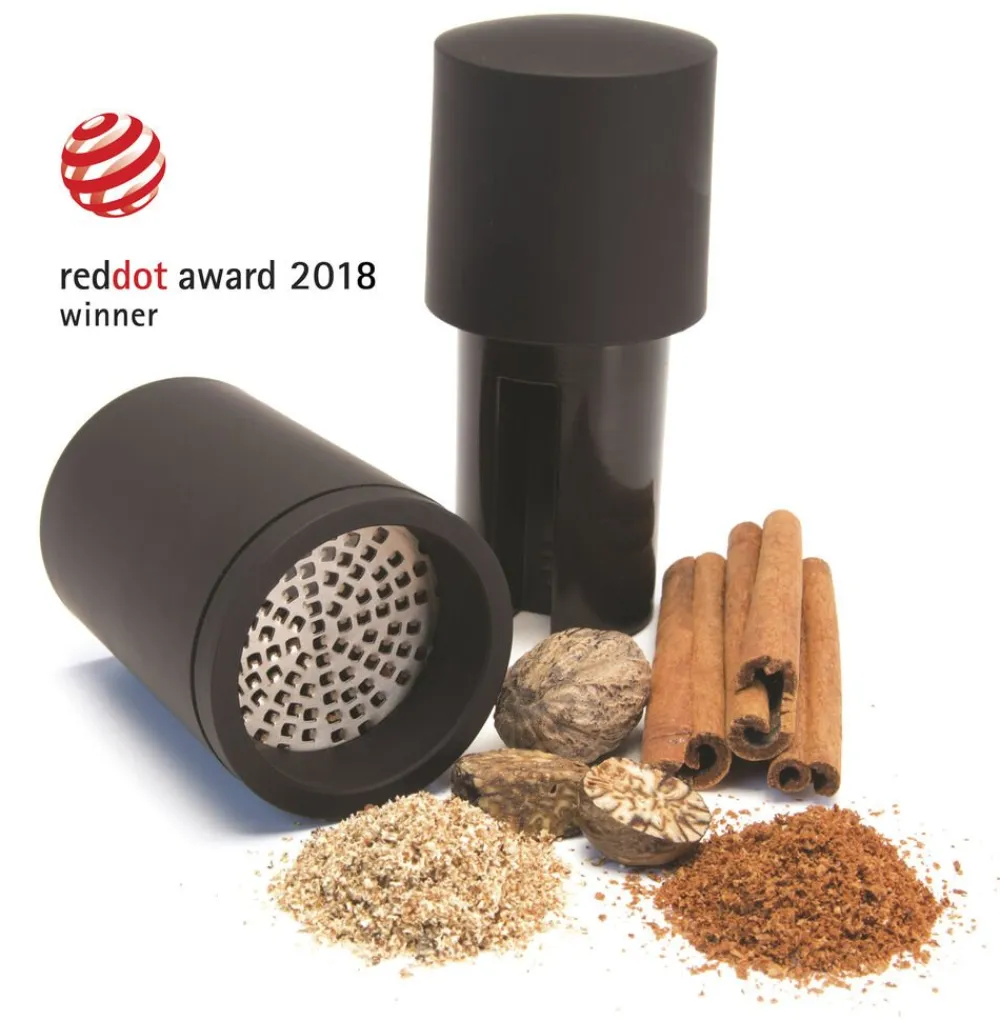 Microplane krydderi og muskatkværn med opbevaringsrum i toppen. Kværner let og ubesværet f. eks kanel, muskat m.m. til det fineste pulver. Vandt en Reddot Award i 2018 for kvalitetsdesign.