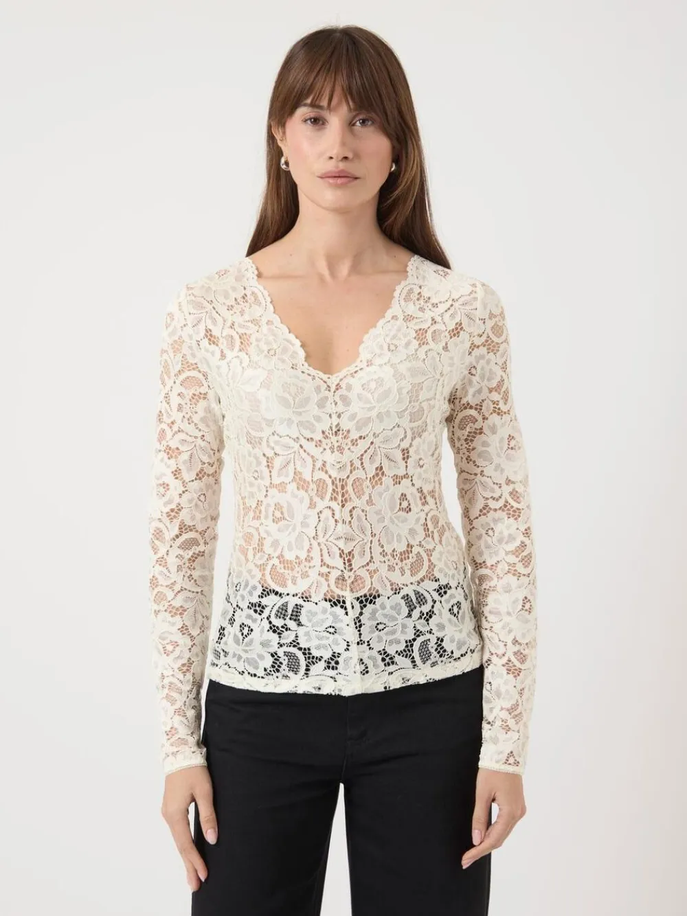 Denne vare er lavet i et fint blondemateriale med feminine mønstre, der giver et elegant look,.