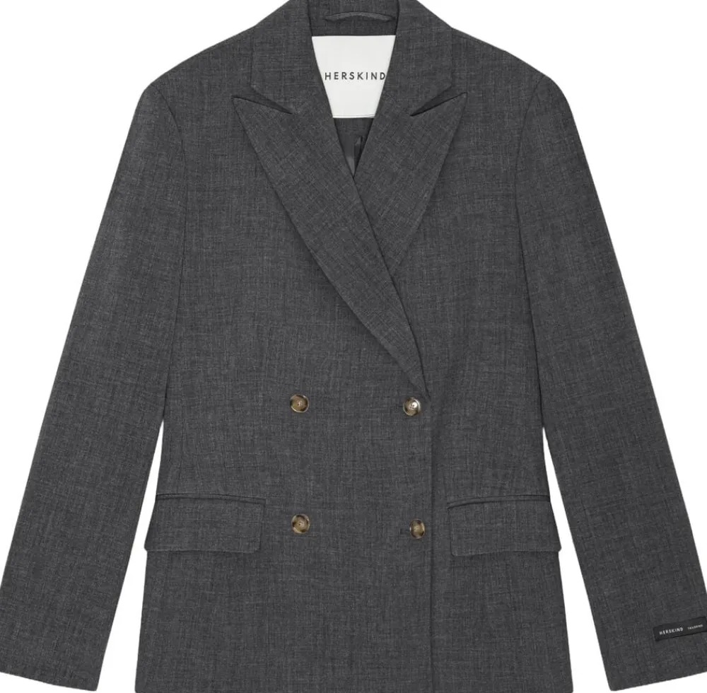 Skræddersyet dobbeltradet blazer.Defineret af en skulpturel silhuet med fitted talje og skarpe skuldre. Designet til et raffineret, feminint udtryk, samtidig med at det bevarer et struktureret look. Skræddersyet, figursyet silhuet sammen med Dita-nederdel eller Kimberly-bukser, der kan bruges til at vende på hovedet
