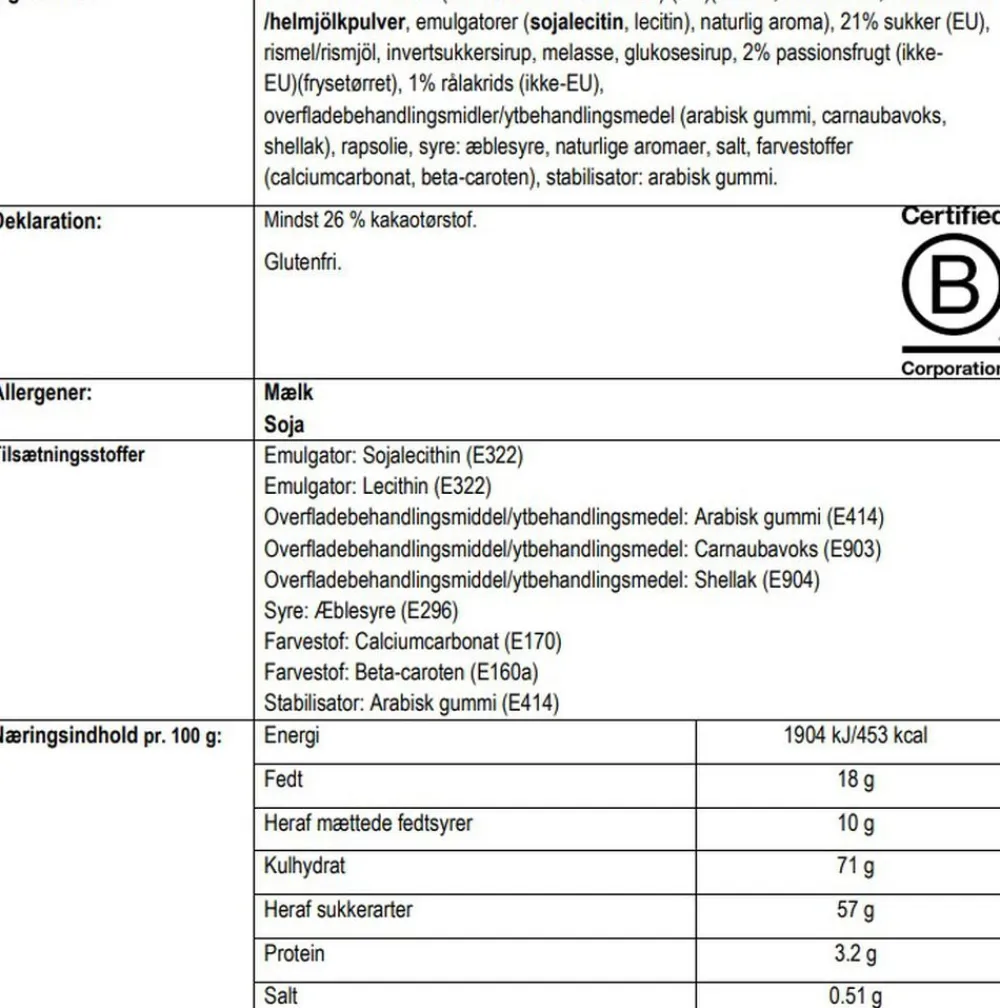 Sød lakrids iklædt nøje udvalgt hvid chokolade og forførende passionsfrugt. Chokoladens sødme, passionsfrugtens syrlighed og lakridsens evne til at forene smagsoplevelserne giver den perfekte mundfuld. Sødt, syrligt og suverænt – omsluttet af en delikat, sprød sukkerskal.