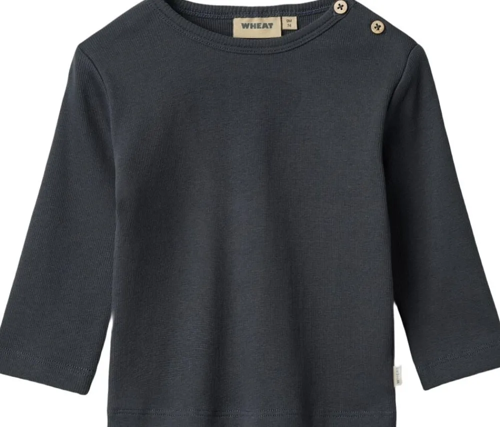 Langærmet rib t-shirt i blødt økologisk bomuld til din baby. – Tætsiddende og strækbar – Åbning med trykknapper på venstre skulder Wheat’s T-shirts er et must have i din babys garderobe, da T-shirtsene er bløde og behagelige at have på. De kan let styles med et par leggings og en strik udover alt efter vejr og anledning. Det er også perfekt som et ekstra lag under en kjole eller smækbukser på koldere dage. T-shirten har knapper på skulderen, hvilket gør det lettere for dig at klæde din baby på. — – Standard 100 af OEKO-TEX® – 95% Økologisk bomuld, 5% Elastan – GOTS certificeretLangermet ribbestrikket T-skjorte i myk økologisk bomull for babyer. – Tettsittende og elastisk – Trykknapper på venstre skulder Wheat’s T-skjorter er et virkelig essensielt plagg i babyens garderobe, da T-skjortene er myke og behagelige å ha på. De kan enkelt styles med et par leggings og en strikk på toppen avhengig av vær og anledning. Det er også perfekt som et ekstra lag under en kjole eller overalls på kalde dager. T-skjorten har knapper på skulderen, noe som gjør det enklere for deg å kle på babyen. — – Standard 100 av OEKO-TEX® – 95% økologisk bomull, 5% elastan – GOTS