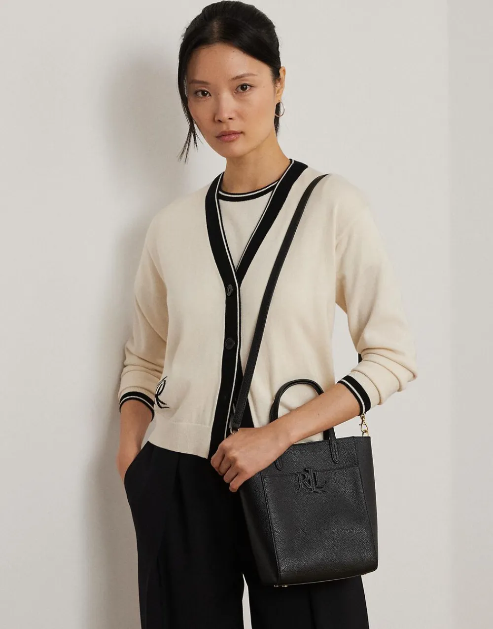Den lille Cameryn-tote bag har et stablet “LRL”-logo på forsiden for en signaturstil. Den har en rummelig silhuet udført i rillet læder for diskret tekstur og raffineret stil. En åben lomme på ydersiden giver nem adgang til dine mindre genstande, som f.eks. en telefon eller nøgler, mens en aftagelig, justerbar skulderstrop giver håndfri Styling