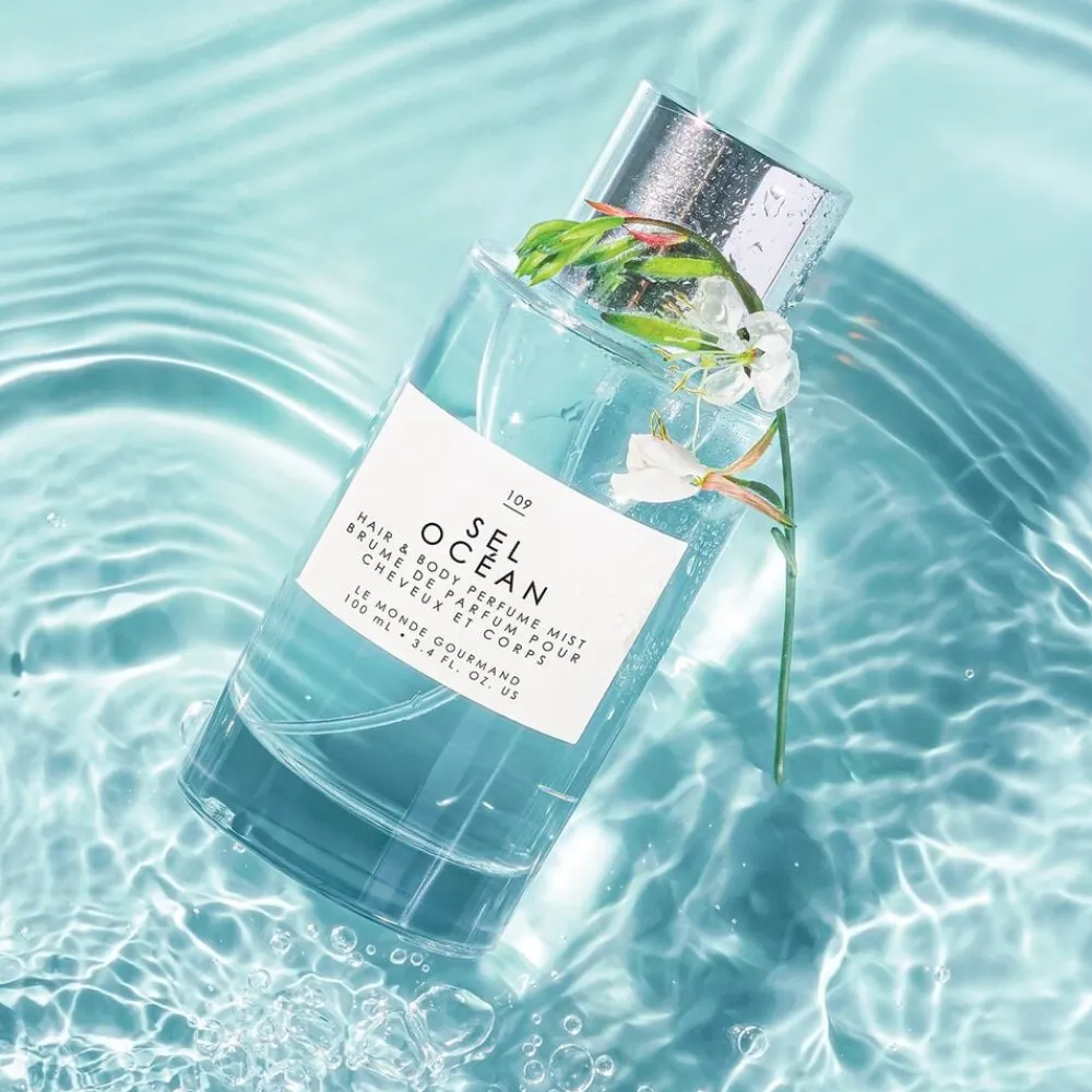 Duften er en ode til vand og en frisk duft til dem, der elsker en salt havbrise. Det er duften af at stå ved vandet, hvor bølgerne plasker mod huden, og brisen er fyldt med muligheder. Sel Ocean, den velduftende mist til hår og krop, stiger op langs kystlinjen og er en lysende, luftig duft, der opfrisker hud, hår og tøj.