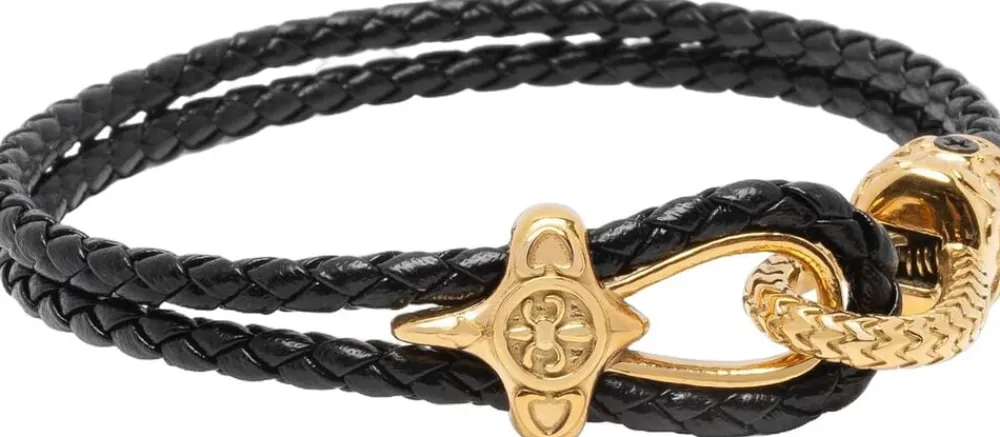 Herre Black Leather Bracelet med guldremsspænde, 2,5 mm sort flettet læder, hardware i rustfrit stål af høj kvalitet med 18k guldplade. Håndlavet i Los Angeles