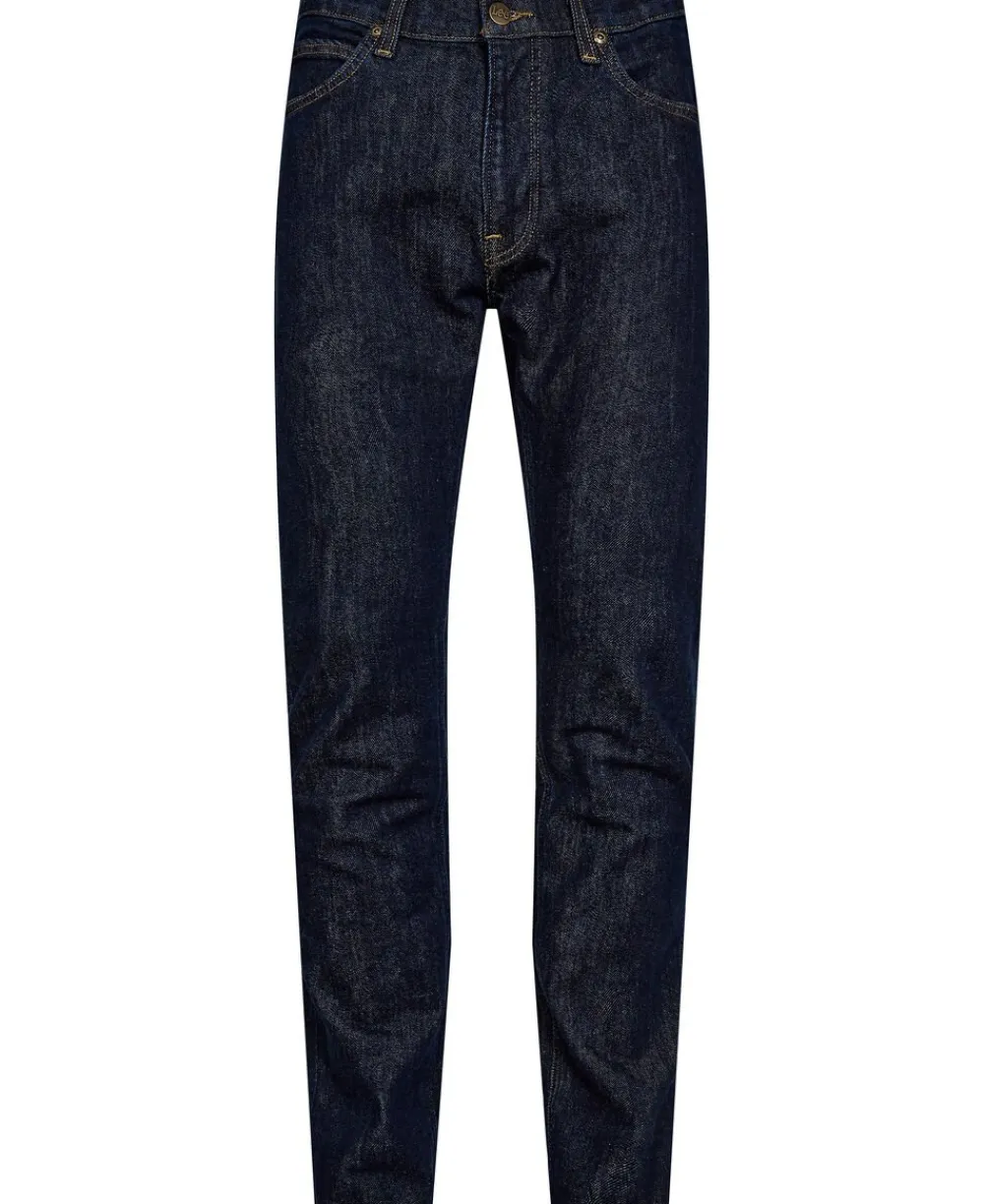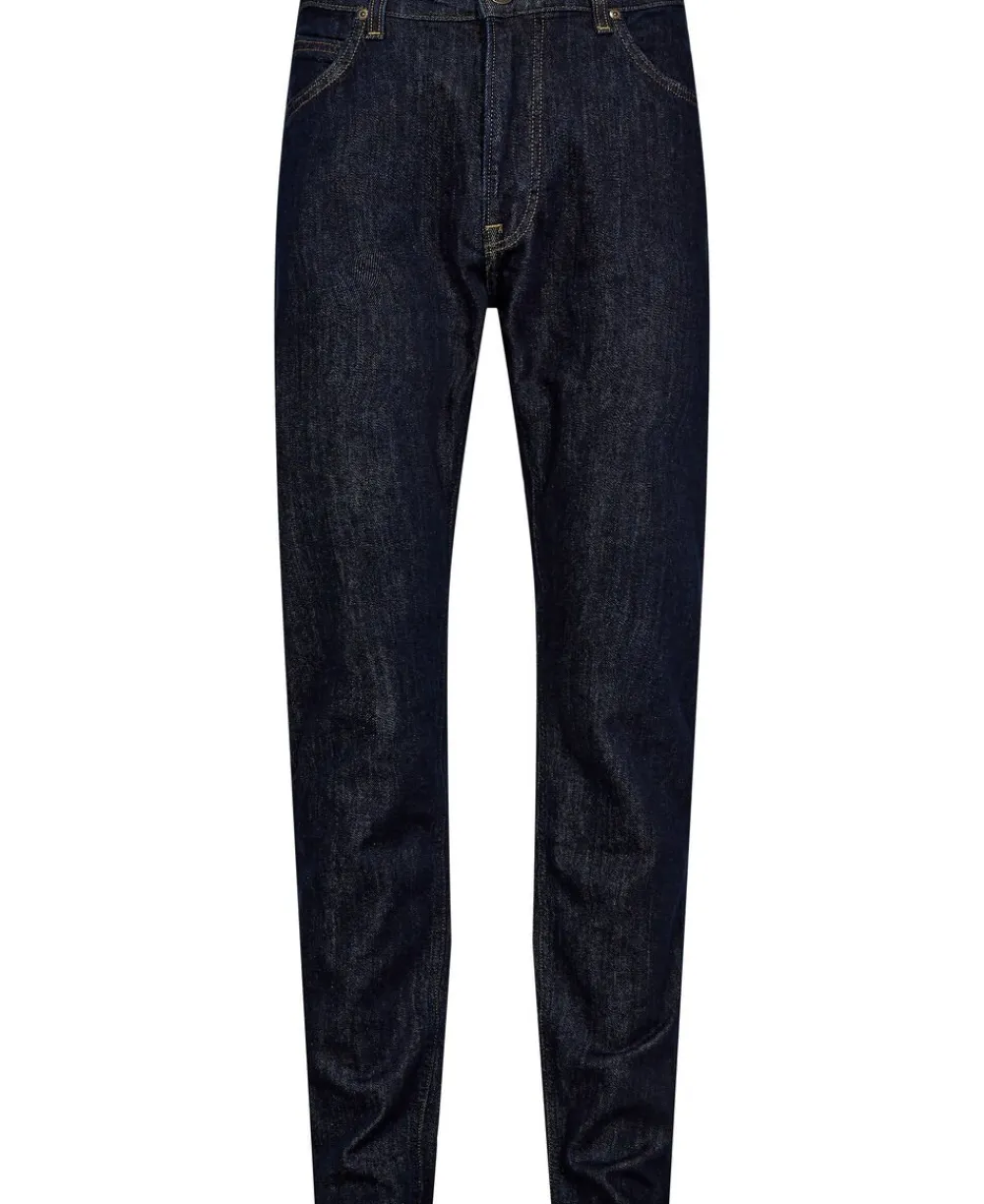 Daren er en meget populær regular fit jeans med lige ben. Disse jeans er en ægte moderne klassiker med mellemhøj talje med lynlås og en straight fit pasform fra lår ned til ankel. Daren er et musthave i garderoben med en pasform, der ikke er for smal eller for bred. Denne klassiske blå jeans er konstrueret med indvævet stretch, hvilket giver en meget behagelig komfort. Den mørkeblå denim giver et meget stilrent udtryk, og gør denne jeans anvendelig og brugbar både til hverdag og fest. Kontrastsyningerne har en varm gylden farve, der komplementerer den blå denim, mens knapperne og nitterne glimter med en messingfarve. Klassisk stil med fem lommer.