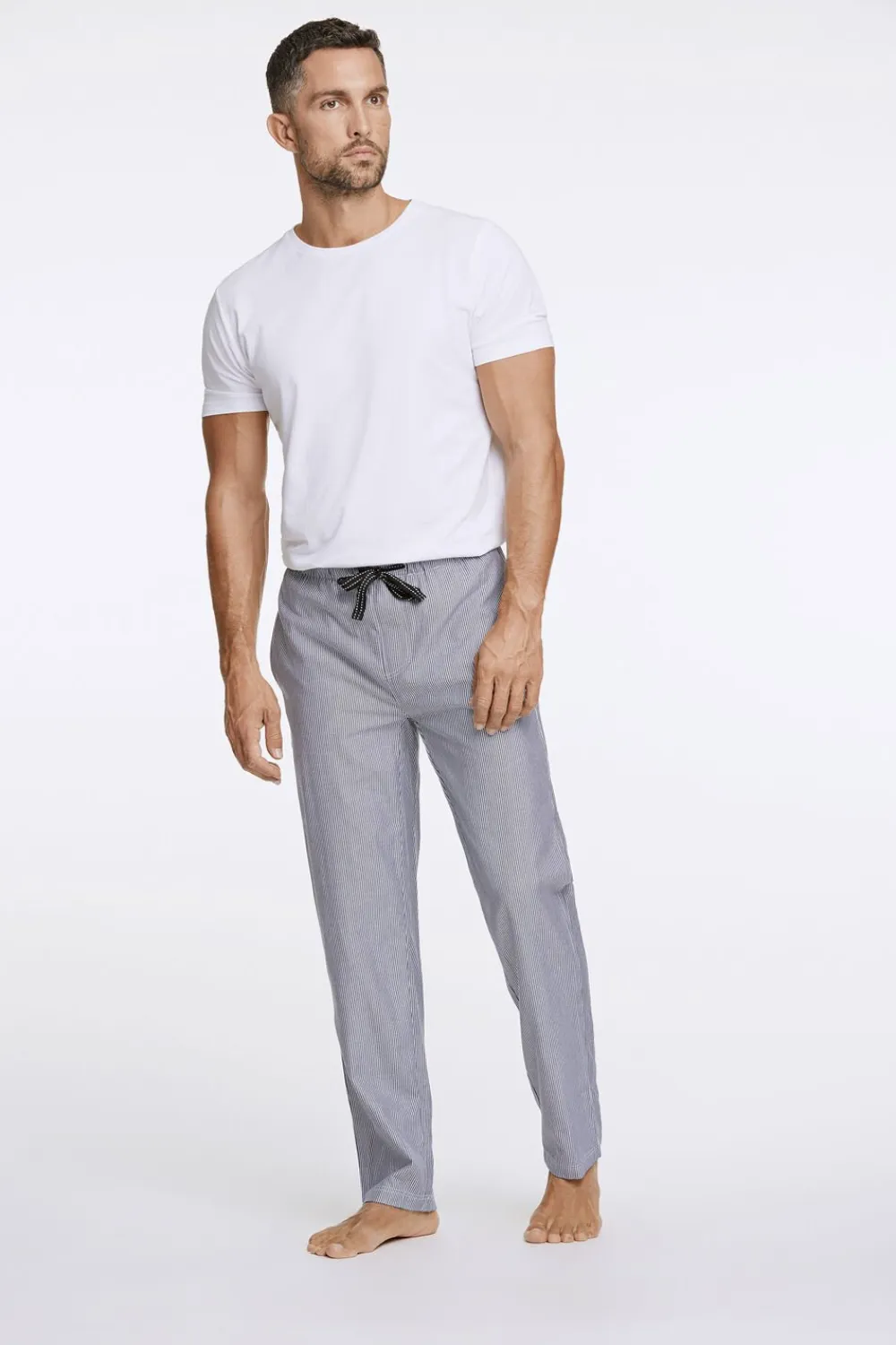 Pyjamasbukser fra Lindbergh. Bukserne er stribede og har elastik og bånd i livet og lommer i siden. Pyjamasbukserne har en enkelt baglomme med logo på højre side.