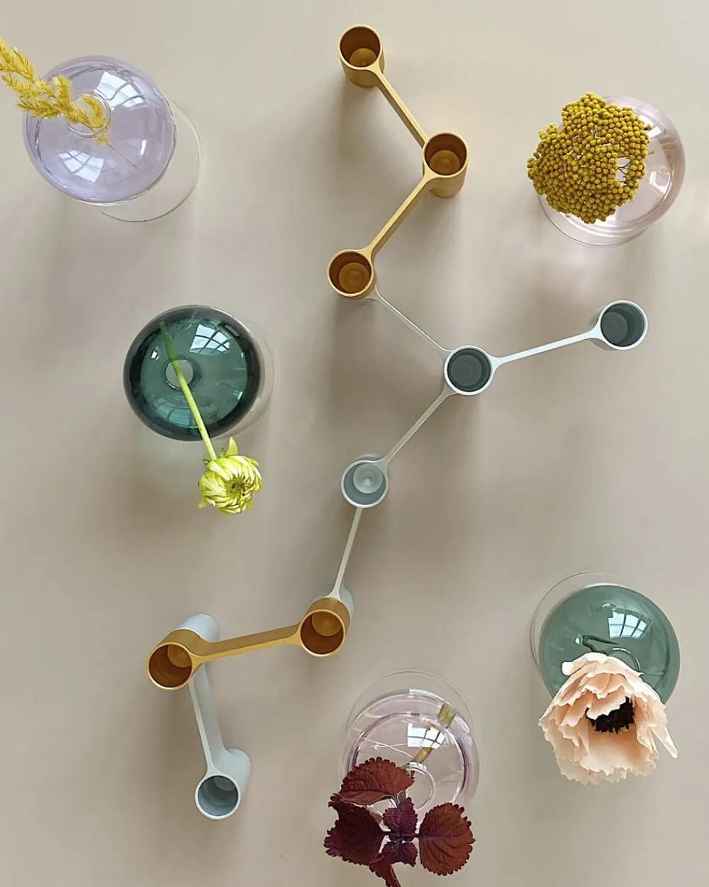 LINK lysestagerne er en kollektion af modulære stager, der kan stå enkeltvis eller sættes sammen til en større stage. Lysestagerne er lavet af aluminium og designet af arkitekt Mikkel Lang Mikkelsen.Den skulpturelle lysestage fås her i blank sølv, der med sit enkle og moderne udtryk passer ind i de fleste nordiske hjem. INDRET MED METALLERLINK lysestagen består af 3 moduler, der sættes sammen til én stage. Man har derfor fuld frihed til at skabe sin egen stage – enten med de 3 moduler der medfølger i denne pakke eller ved at sætte flere stager sammen. Lysestagen fås også i mat guld, sort og mat sølv. Man kan sagtens sammensætte forskellige metaller for et anderledes udtryk og variation. De smukke metaller indgår smukt i indretningen og i et miks med træ og tekstiler giver de både varme og personlighed. Lysestagerne kan bruges med et klassisk kronelys eller med lange slanke lys – vælg lys i din yndlingsfarve og brug dem i et lille stilleben eller på spisebordet, hvor stagens højde gør den meget velegnet. For et stramt og stilrent udtryk kan du bruge vores olielys lavet i glas, glassets gennemsigtighed giver stagen et mere blødt udtryk. PAKKEN INDEHOLDERDu får 3 LINKS moduler pr pakke, hvilket giver plads til 4 lys. Du kan desværre ikke tilkøbe enkle links, da de er pakket i sæt af 3.Stagen har standardmål og passer derfor eksempelvis til det klassiske kronelys. Du kan også bruges vores nye farvede glaslys.MÅLFARVE: Poleret grå HØJDE: 40 MMLÆNGDE: 110 MMDIAMETER på røret: Ø 23 MMVÆGT inkl. emballage : 0,375 KGStagen kommer i en enkel og stilren æske og kan derfor nemt sendes og fragtes. Lysestagen er lavet af overfladebehandlet aluminium. Behandlingen beskytter metallet mod rust og UV stråler og vasen vil derfor beholde sin smukke glans og blanke grå farve og holde sig pæn over tid.Studio About er et dansk designstudio og alle produkter er designet af arkitekt Mikkel Lang Mikkelsen.