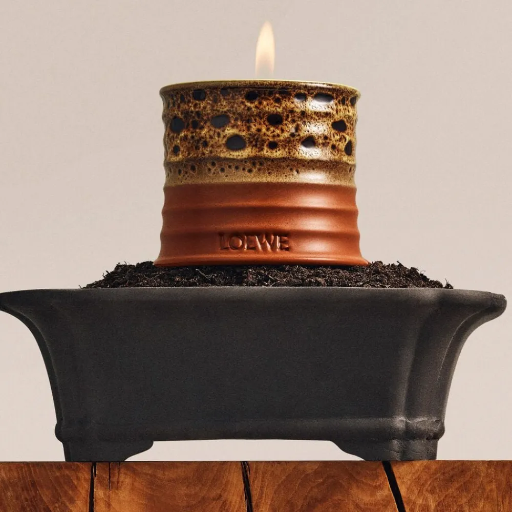 Lyset er fremstillet af naturlig voks med én bomuldsvæge og præsenteres i en gulbrun, reaktivt glaseret terrakottabeholder med jordnær tekstur og Anagram-præget bund. Gaveæsken er fremstillet af 80% genbrugspapir, tilsat bomuldsfibre. Alle LOEWE Home Scents-produkter er håndlavede, multisensoriske kreationer, hvor farve, duft og rå natur mødes, hvilket gør hvert enkelt lys unikt.