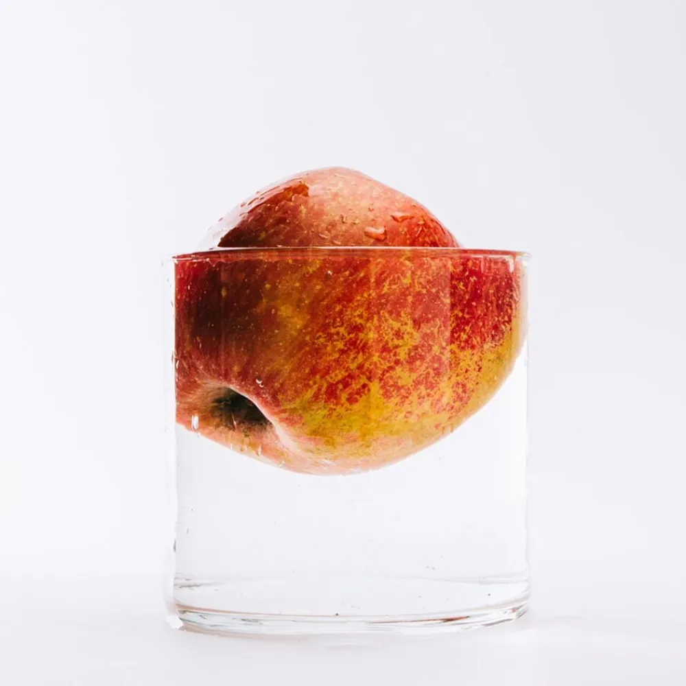 Flakonen er skabt i transparent glas i klar orange og afsluttes med en taktil træhætte.
