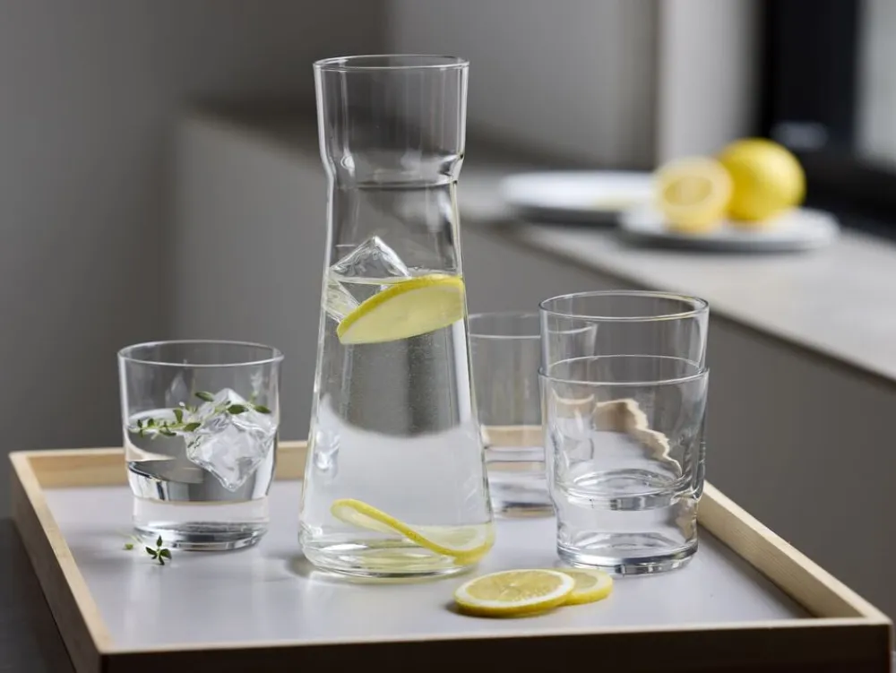 Karaffelsæt til lækre forfriskninger hvad enten du slapper af i solen eller hygger indenfor. Både karaflen og glassene udmærker sig med deres elegante design og rene linjer. Karaflen har god plads til både isterninger, friske citrusskiver og aromatiske krydderurter. Sættet består af en karaffel med en kapacitet på 1 liter samt fire glas, der hver rummer 35 cl.