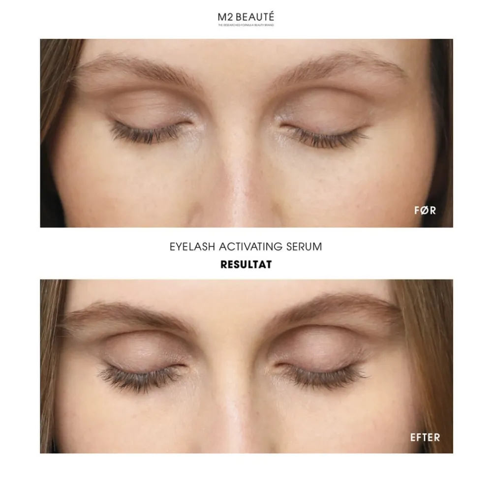 M2 Beautés Eyelash Activating Serum giver dig med garanti længere, fyldigere og mørkere øjenvipper. Det øger antallet af vippehår, forlænger deres vækstfase og øger farveintensiteten for at give dig et naturligt udseende med de øjenvipper, du altid har drømt om. Eyelash Activating Serum er M2 Beautés ’Booster Serum’, der giver dig mørke, udtryksfulde øjenvipper, som kan gøre mascara næsten overflødig. Det revolutionerende Eyelash Activating Serum fra M2 Beauté fremmer, med sit yderst effektive, innovative aktive ingredienskompleks, øjenvippernes vækst og fylde med gennemsnitligt 50%.