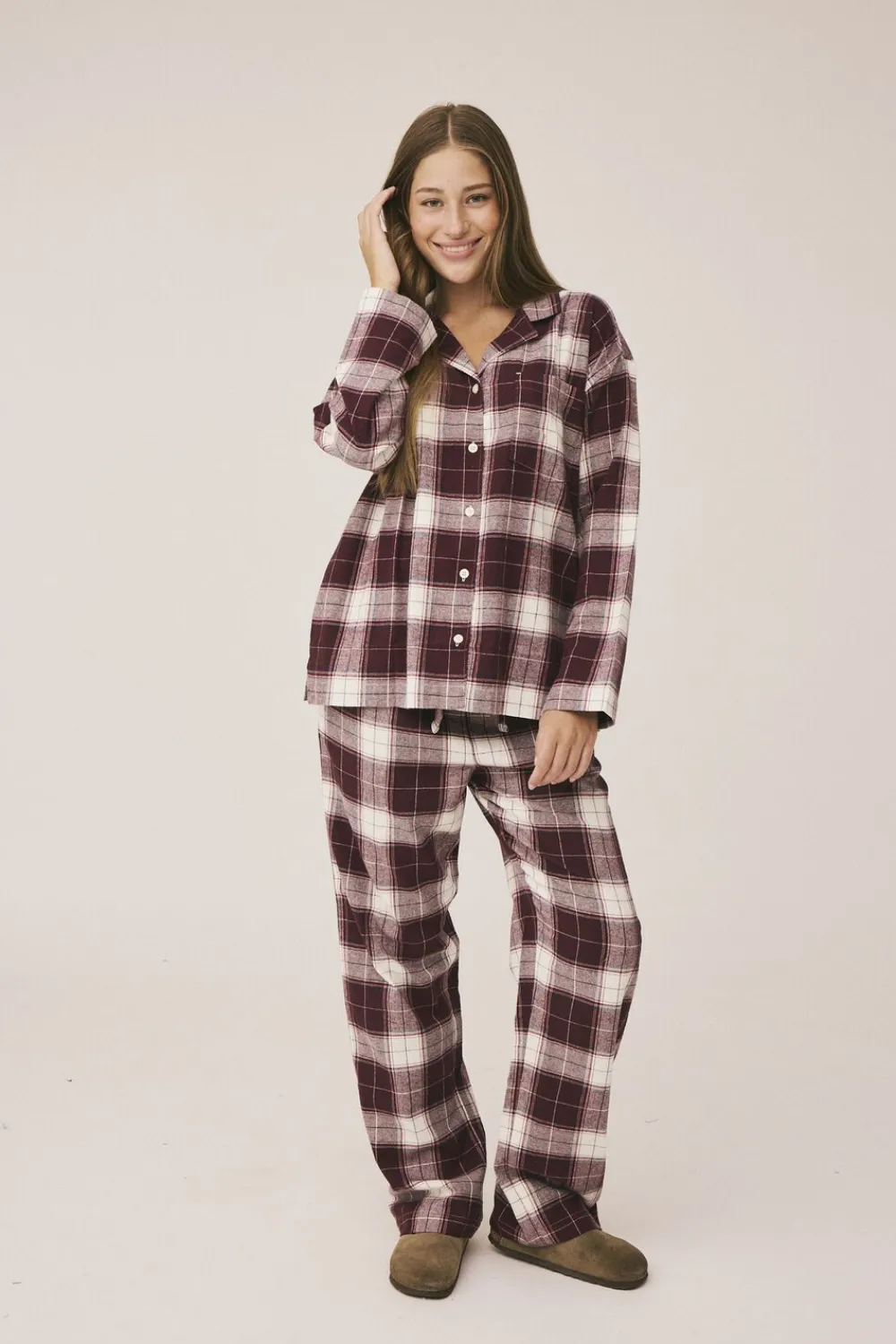 Pyjamasskjorte fra Magasin du Nord Collection i den blødeste kvalitet af 100% økologisk bomuld med GOTS-certificering. Skjorten har et klassisk, ternet print, lange ærmer, en åben krave, en enkelt brystlomme samt knaplukning på fronten. En casual pyjamasskjorte i den lækreste kvalitet.